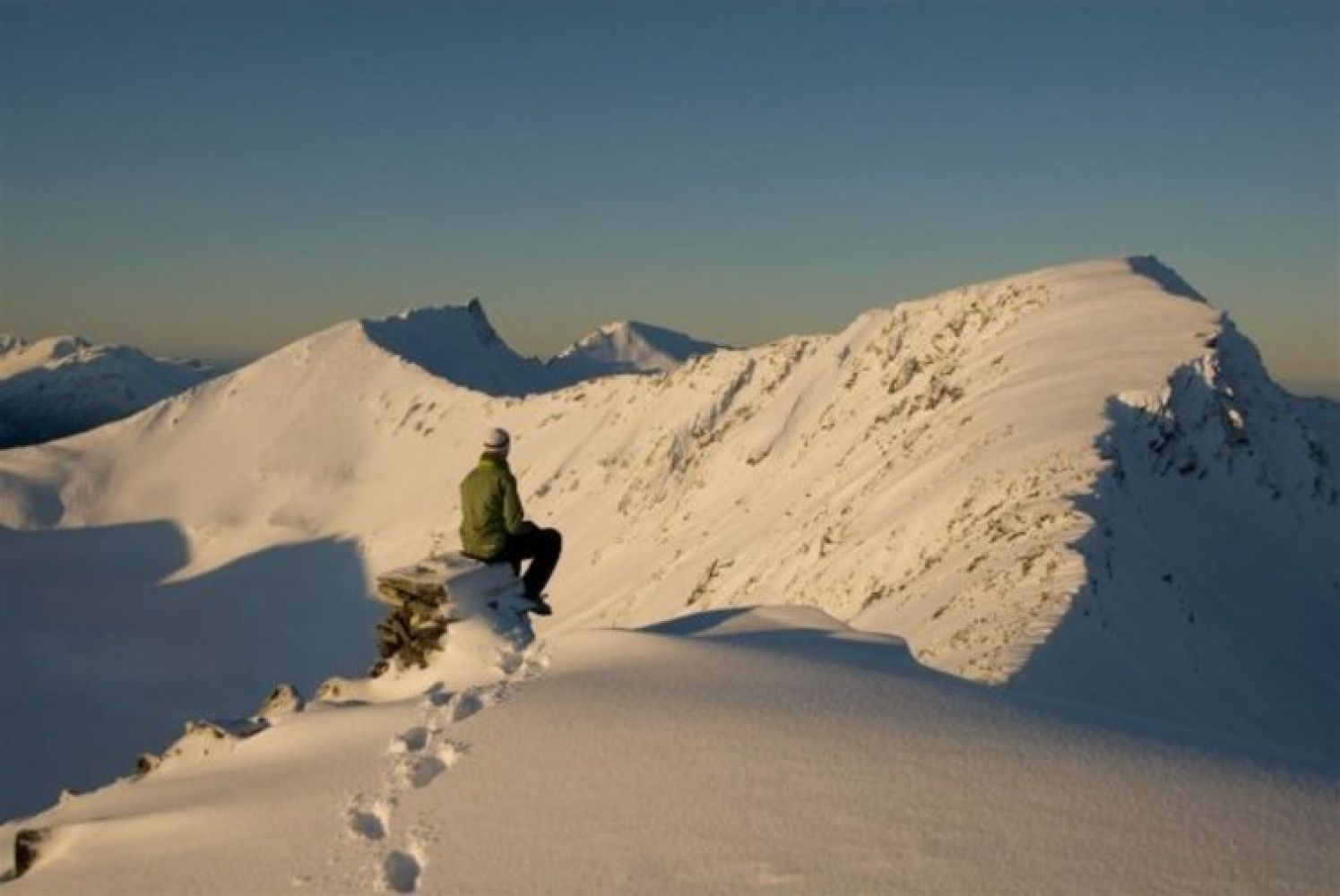 Ned igjen er den flotteste siden ned syd-øst siden, som byr på relativt bratt, men lite utsatt kjøring.