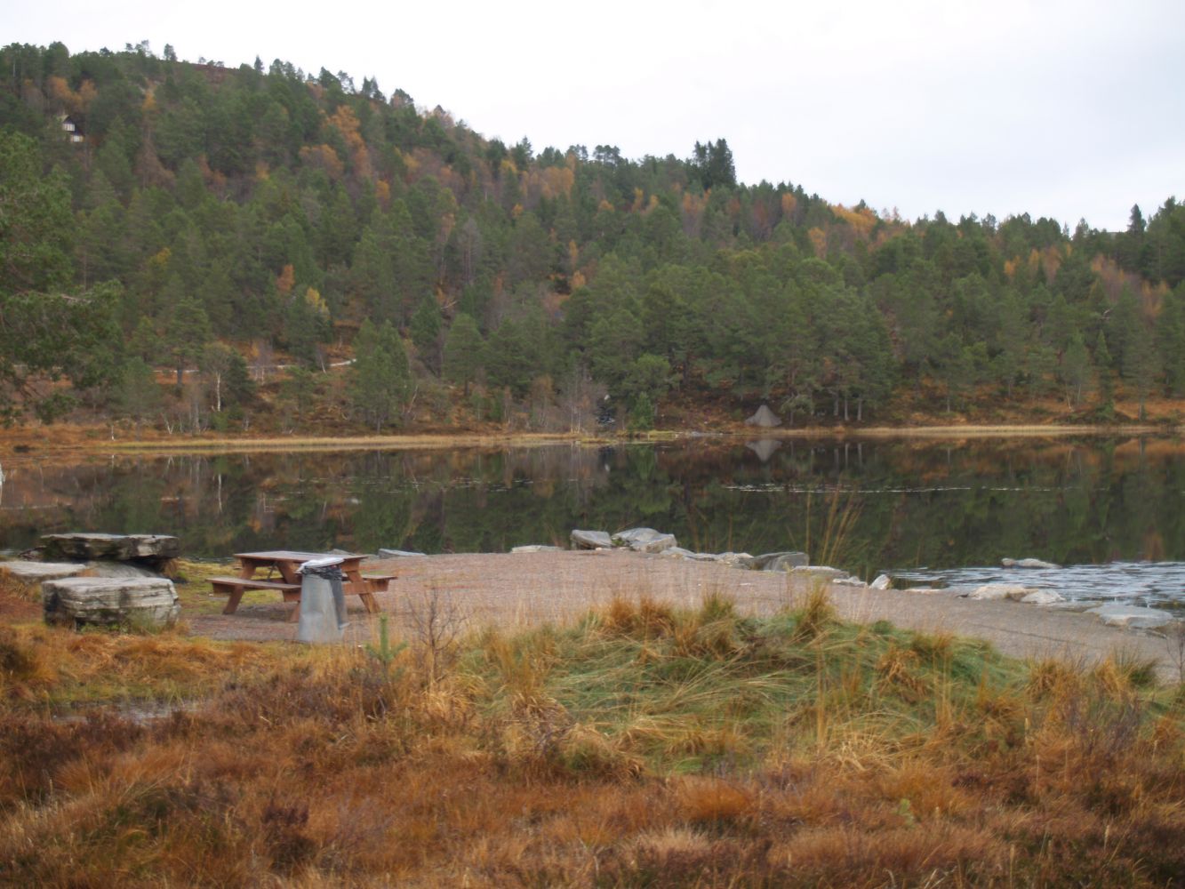 En enkel tur i lett variert terreng, i opparbeidet lysløypetrase og fin turveg langs elvefar opp til det flotte Øverlandsvatnet. Her kan det passe med en rast ved Damvokterhytta. Hytta ble brukt av damvokterne ved Moldes gamle drikkevannskilde. Er det fint vær kan en svømmetur i Øverlandsvatnet også nytes før returen.