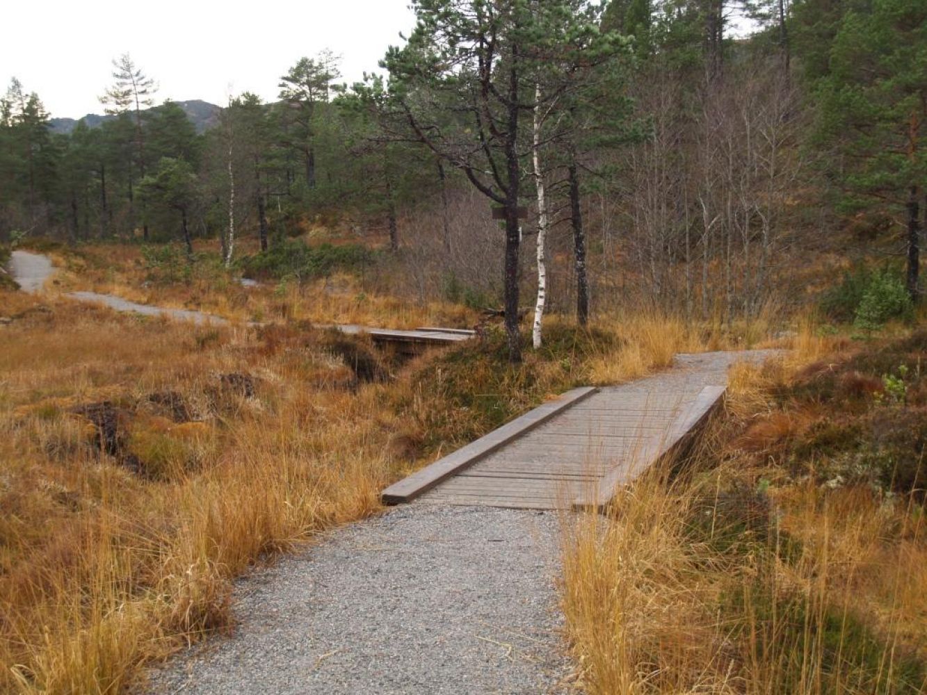 Fra Grua følger en lysløypa opp til første stikryss ved Nonsmyra. Der deler lyløypa seg. Ta til høyre. Følg gruset løype til neste stikryss der du også tar til høyre mot Fjellbrua og Fjellbrudammen. Kryss Vardevegen og følg lysløype videre mot øst og følg løypa forbi krysset der det er merket opp til Jengurilia. Rett etter dette tar lysløypa til venstre over en bru. Der løypa svinger skal du fortsette rett frem etter en smal fin turveg med mange broer, bygd av Moldemarkas Venner. Følg denne svingete og artige turvegen opp til Øverlandsvatnet