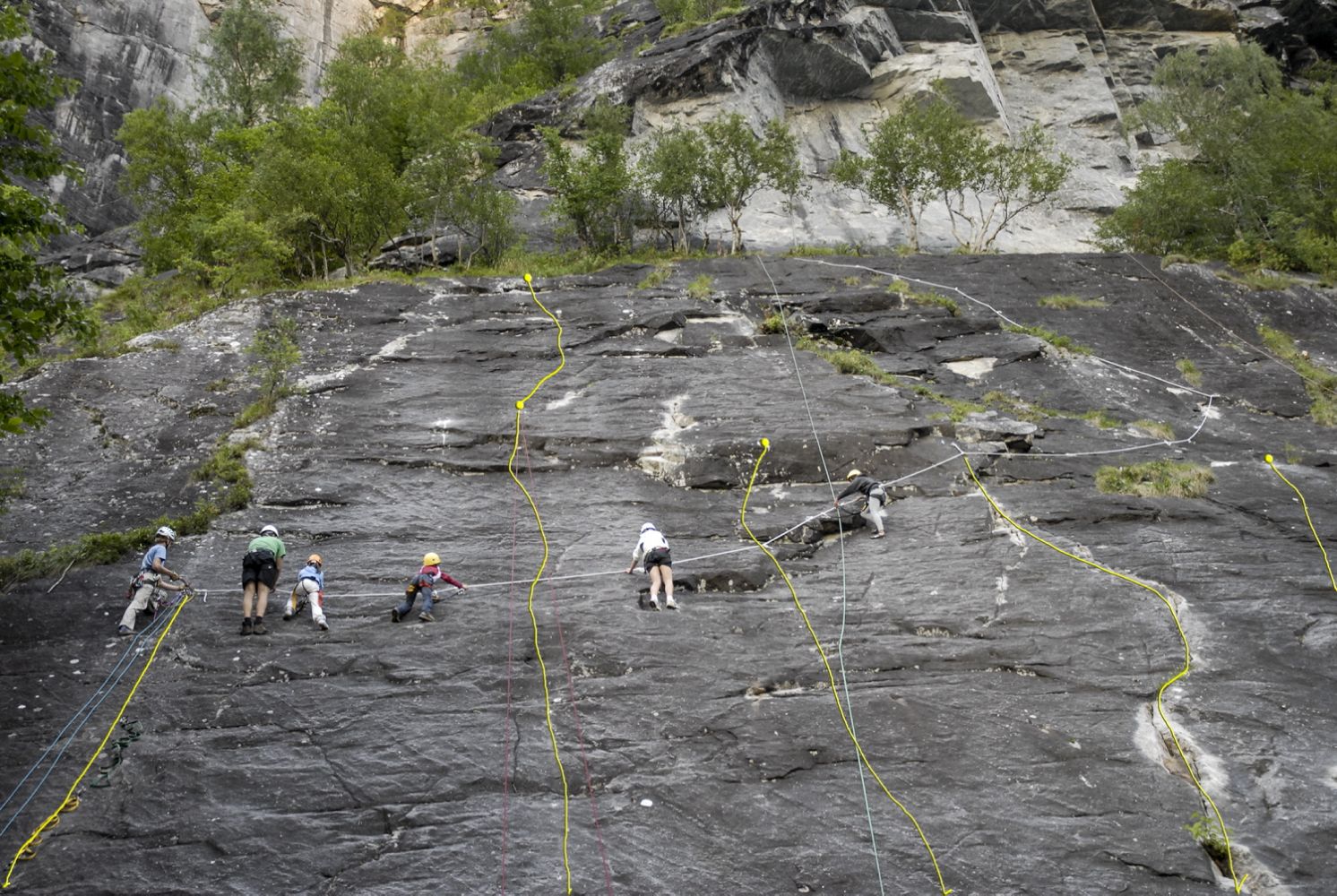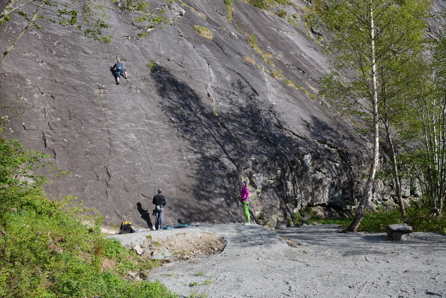 Gaidsvaet er spesielt tilrettelagt for nybegynnere. Her er alle klatrerutene ferdig bolta og med snufester slik at du kan topptaue. På Gaidsvaet er det også ei kort Via Ferrata-rute, eller klatreløype som vi lokalt har valt å kalle det. Istaden for ståltau/wire er det spent opp tau som du sikrer deg i. Klatreløypa er ca 100 meter lang. Om du er nybegynnar bør du ha med deg ein gaid eller anna kyndige person som er vant med klatring. Klatreløypa starter med at du først må bli sikra på vanleg måte opp dei første 10 metra.Deretter kobler du deg inn på «Via Ferrata-tauet» med doble fangliner. Retur ved 60 meter rapell.