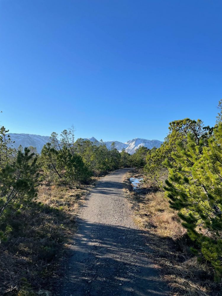 Frå parkeringsplassen følgjer du grusa tursti ved informasjonsskiltet innover i Aukraskogen. Følg denne stien rett frem i dei neste kryssa i retning mot Berghaugen. Berghaugen er ein fin utsiktsplass med benkar og informasjonstavle, herrifrå går du stien vidare og tek enten mot høre eller venstre i neste kryss (rundtur). Dermed følgjer du stien rundt vatnet (Hallingshola). Stikk UT! -posten 2022 er plassert på brua ved Hallingshola. Vegen tilbake er samme veg, forbi Berghaugen via Aukraskogen.