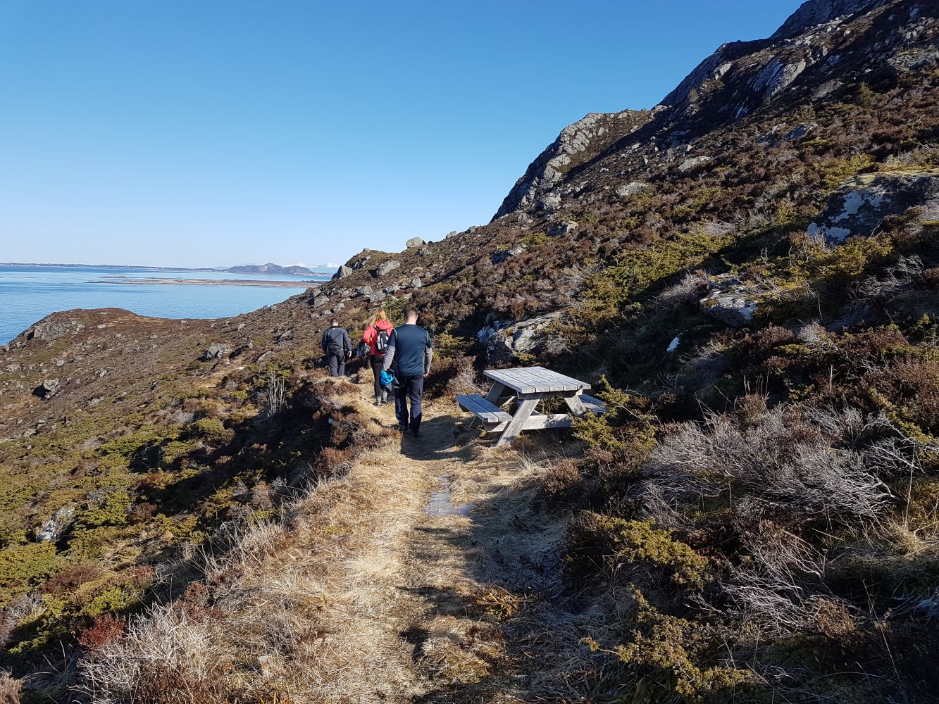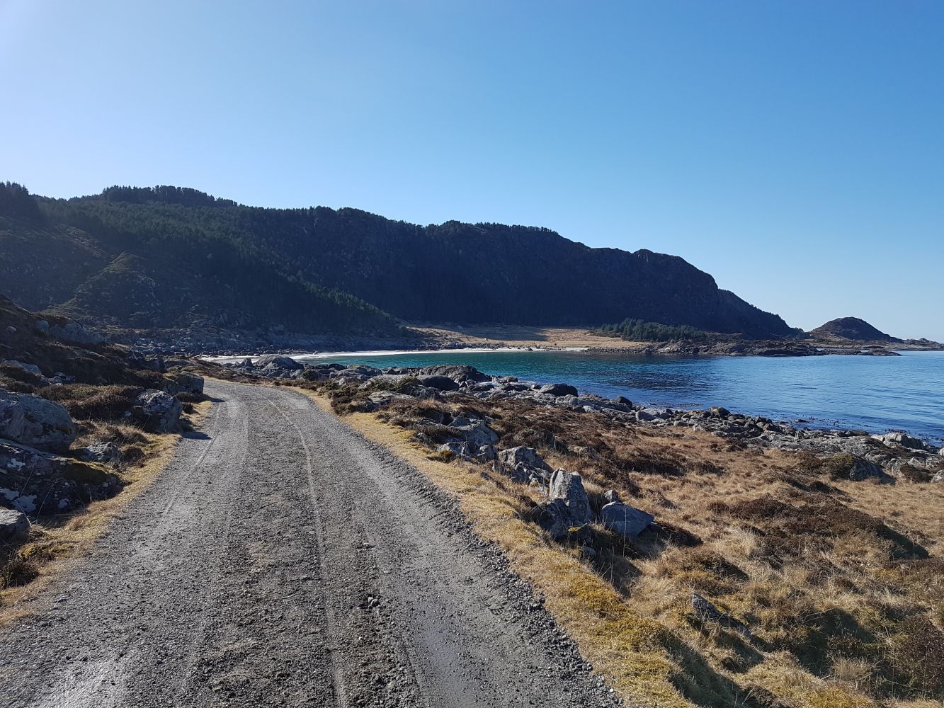 Fjellveg opp til Halsane og frå Halsane til Støane er det rås. Turen går i ulendt terreng. Fin utsikt mot Sandvika badestrand, havet og øyane nordover.