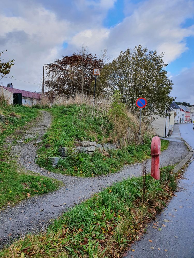 Frå OK-minilager følgjer ein turvegen austover. Første del av stien er nyleg planert ut og opparbeida, så akkurat denne delen er trillevenleg. Etter kring 100-meter tar ein til venstre inn på ein smalare sti. Følg den smale stien og rundt rundt Aspøy omsorgsenter til du kjem inn på Steinvågvegen. Følg Steinvågvegen vestover i nye 100-meter, før du tar av til høgre og inn på Johs. Aarflots Gate. Følg denne gata i nye 100-meter før du kjem inn att på turvegen og der i frå kan gå tilbake til OK-minilager.