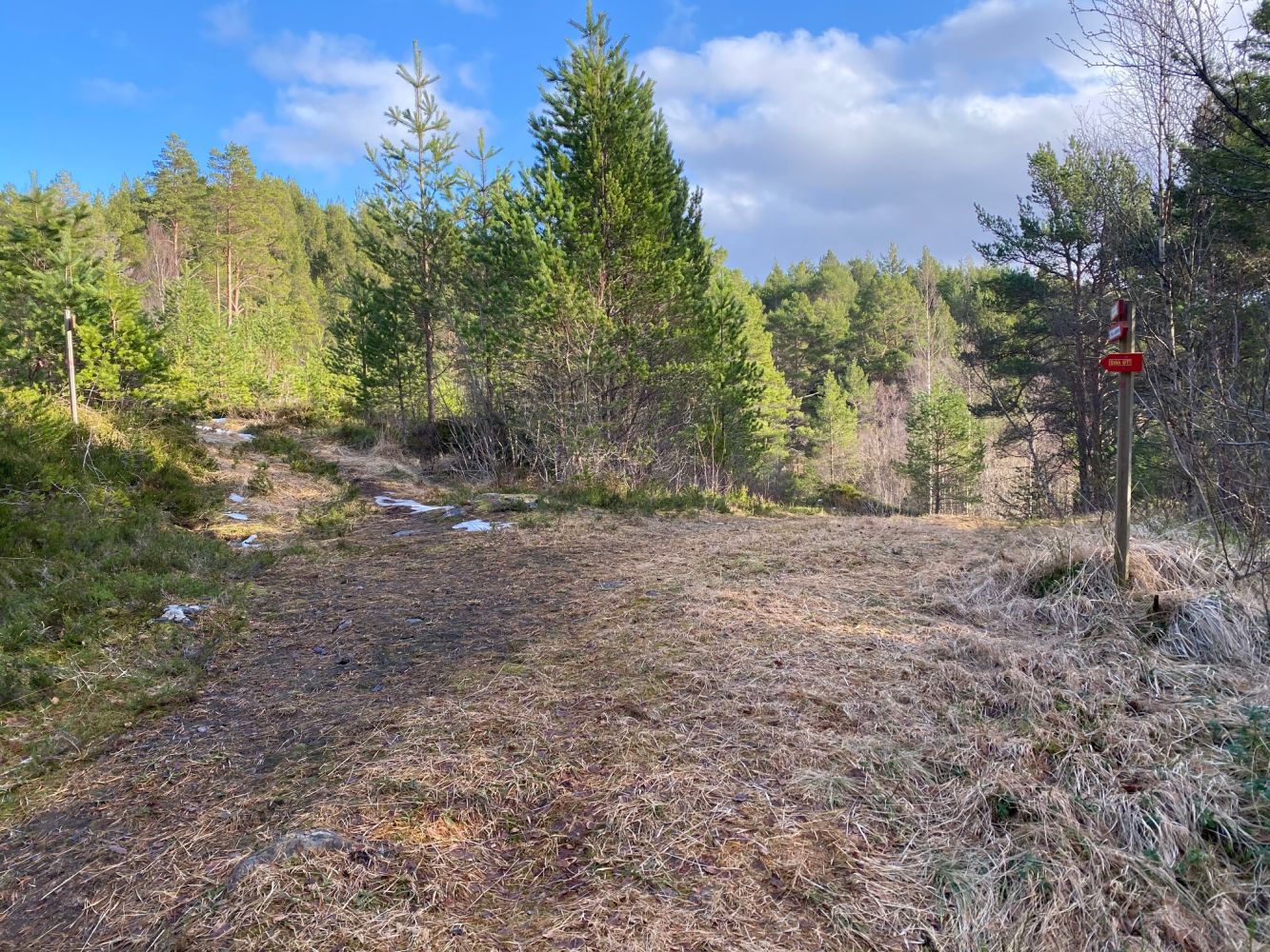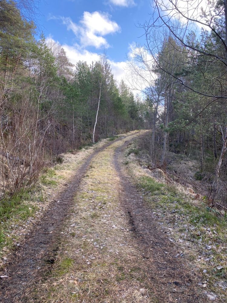 Første del av turen går på skogsvei og siste delen følger en fin sti.