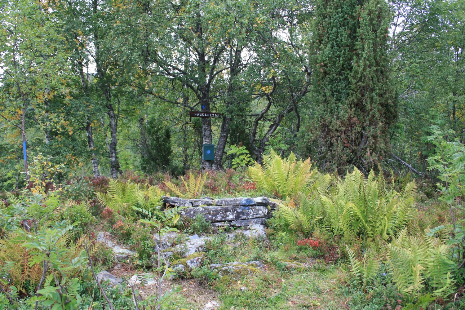 Frå parkeringsplassen går du tilbake til krysset. Der kryssar du vegen og tek inn på merka og tydeleg sti på venstre side av busskuret. Etter ei stund kjem du opp på ein ganske ny skogsveg. Gå oppover etter denne skogsvegen og gjennom eit hogstfelt. Vegen flatar ut oppmed skogkanten i øverkant av hogstfeltet. Du kryssar ein bekk som er lagt i rør før ein sti tek av på øversida skogsvegen. Følg så merka trase oppover til den tidlegare setervollen.