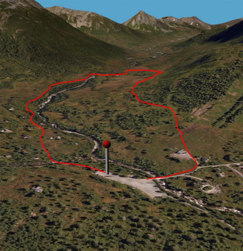 Følg traktorvei til første bra (100 m) og ta over brua på stien inn gjennom hyttefeltet. Følg stien til skilt med Norvikstølen inn til høyre. Stien følger så venstresiden av elva til Haukebergstølen der det er ei ny bru. Kryss brua og følg sti opp til stølen.