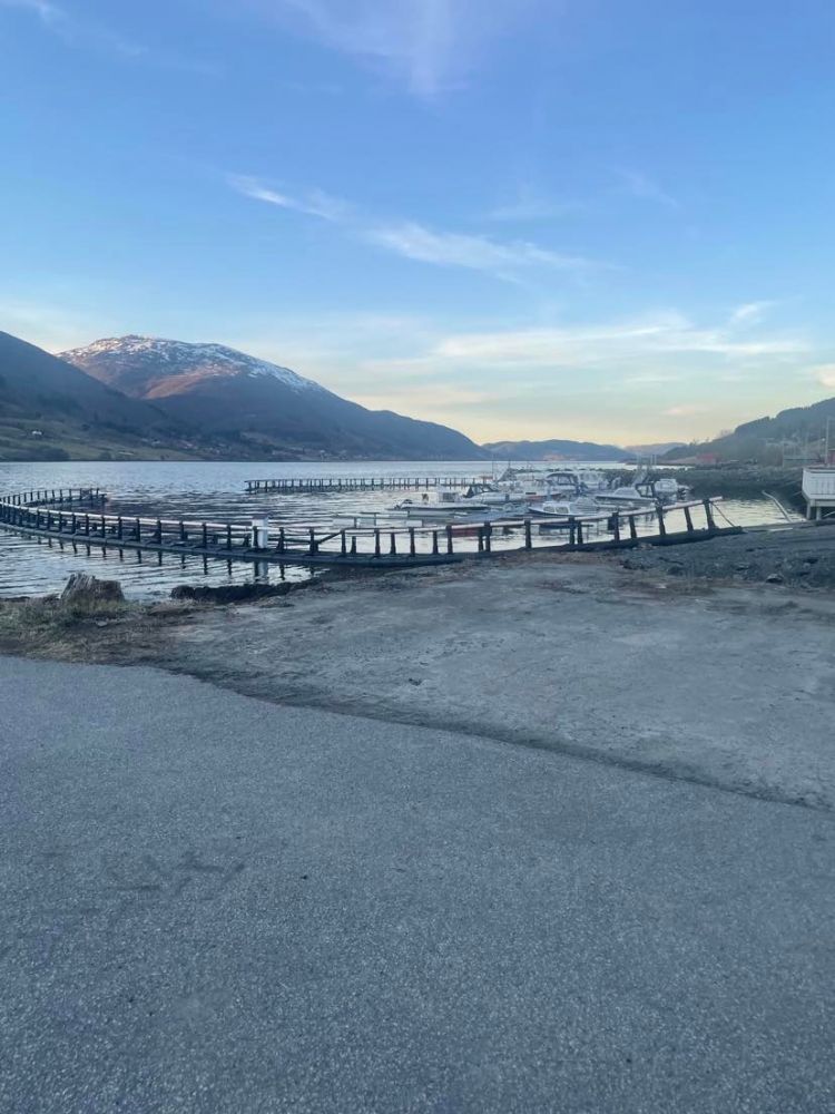 Passer veien fra kommunehuset og mot Bunker Oil, passer bensinstasjonen og gå ut på utsiden av husene mot sjøen. Følg veien og ta til venstre mot småbåthavna.