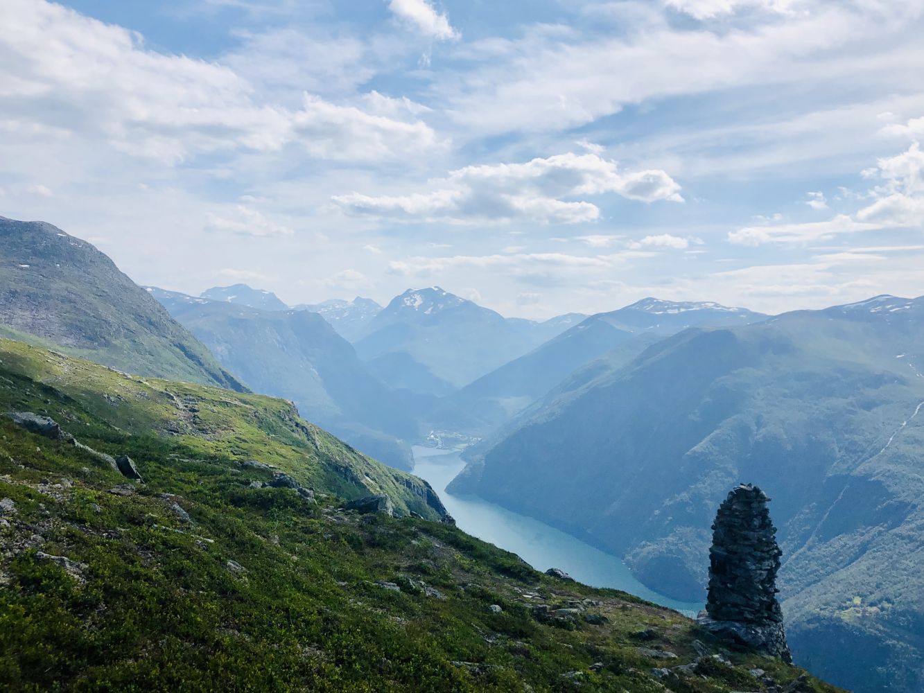 Ved varden har du vidt ustyn. Mot aust ser du Tafjorden og fråflytta fjordgardar på sørsida av fjorden, vidare inn mot Tafjordbygda og Tafjordfjella. Mot vest ser du Norddalsfjorden og bygdene rundt