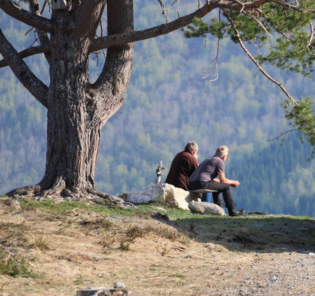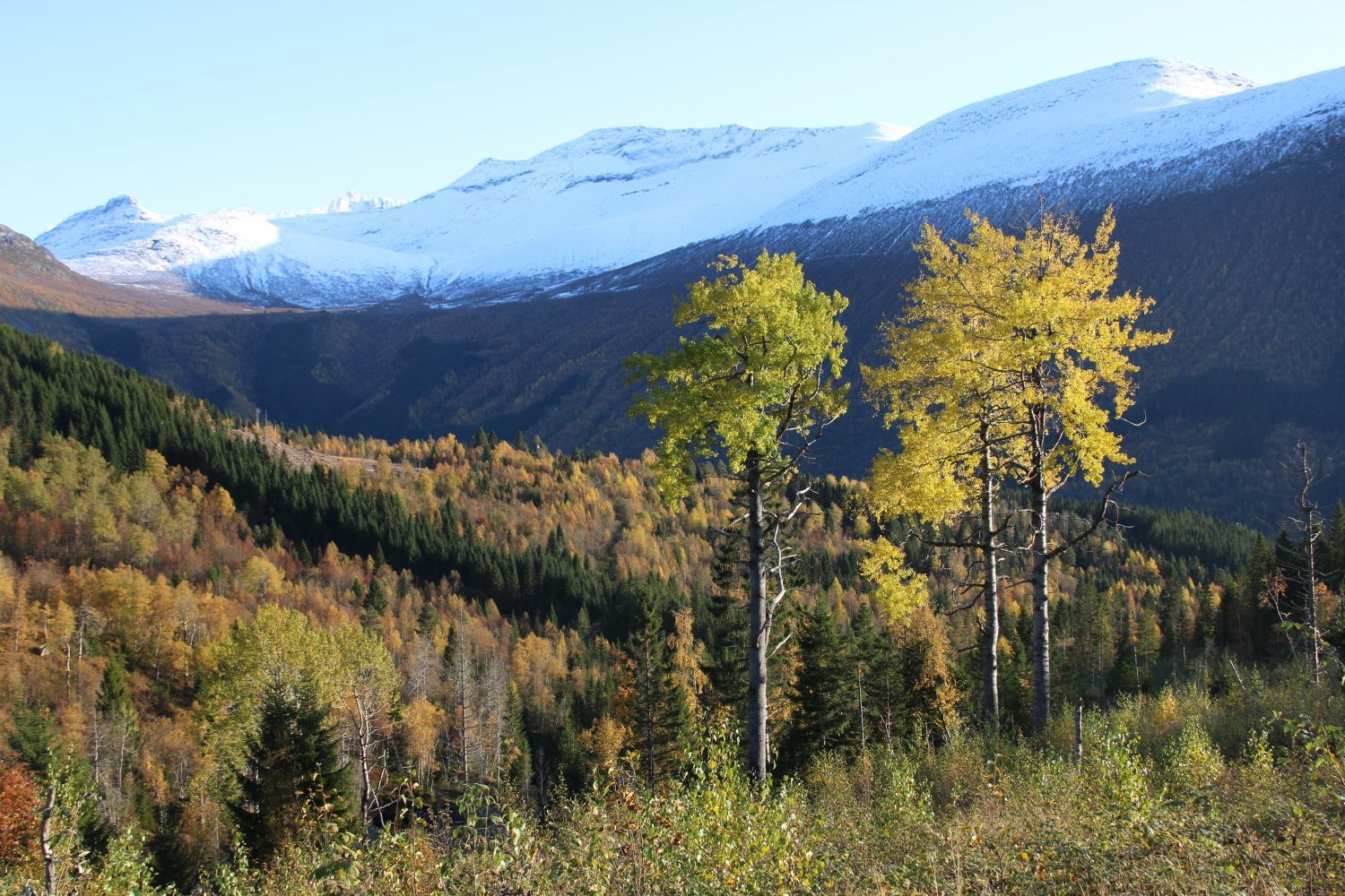 Lett tur i motbakke på fin grusveg til ein lavvo ved ein gammal seterstøl. Skoghogst har gitt god utsikt både undervegs og frå setra.