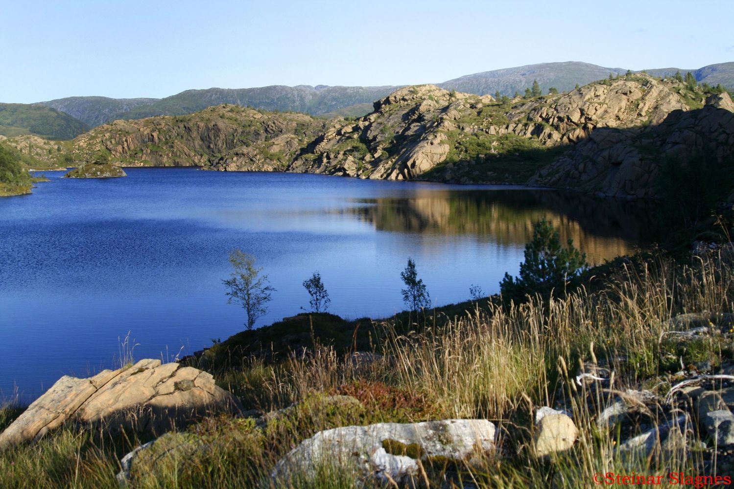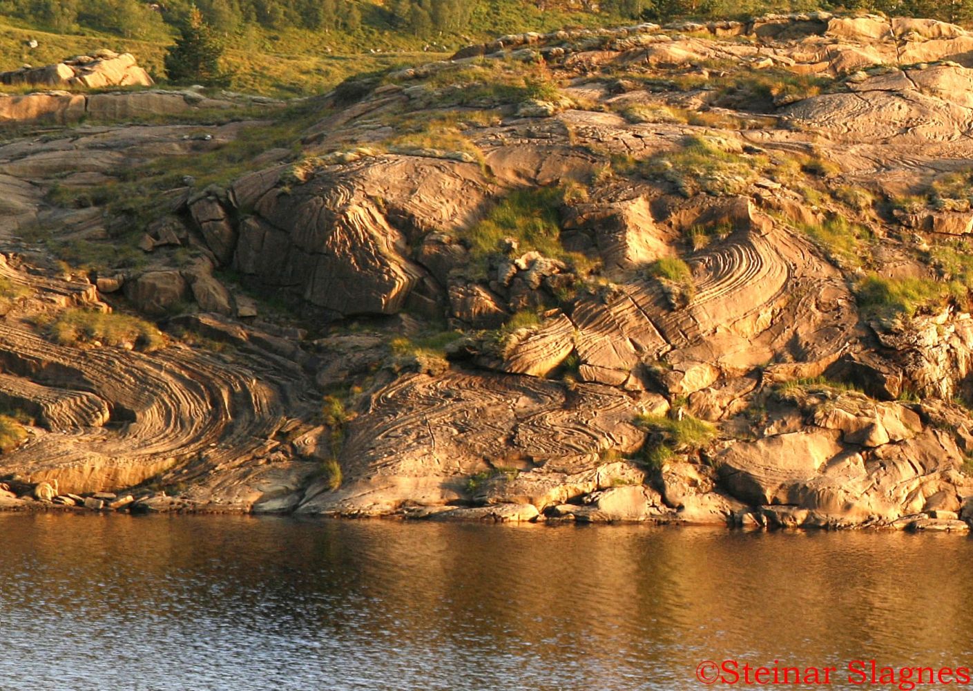 Ein tur til Helgehornsvatnet Helgehornsvatnet er eit lite fjellvatn som ligg mellom Almklovdalen og Sunndalen.Vatnet er langstrakt og ligg 333 meter over havet. Namnet har vatnet fått av fjellet Helgehornet (514 moh) som ligg nokre hundre meter nord for vatnet. Lettaste vegen opp til vatnet går frå Sunndalen, der ein kan følgje traktorvegen som går austover opp forbi Grupsehaugen. Frå Grupsehaugen har ein fin utsikt over Grupsevatnet og gardane kring vatnet. . Alternativ adkomst er frå Hellebust, der ein også har fin traktorveg nesten fram til vatnet. Dei som trur at Helgehornsvatnet berre er et vanleg lite fjellvatn burde ta turen opp til dette fjellområdet. Helgehornsvatnet utmerkjer seg med den spesielle geologien som ein finn rundt vatnet. Då dei tyske geologiprofessorane kartla olivinforkomsten i Sunndalen/Almklovdalen på slutten av 1800-talet, vart dei særleg begeistra for Helgehornsområdet. Grunnen til dette er den vakre granatpridotitten som ligg i austenden av vatnet, og som i dag er naturvernområde. Den vesle forekomsten av granatperidotitt har vore besøkt av utallige geologar. Årsaka til dette er at denne spesielle forekomsten har vore viktig i utvikling av teoriane rundt danninga av djupbergartane eklogitt,olivin,granatperidotitt. Dette har så gitt betre kunnskap om danninga av jordskorpa.Granatperidotitten ved Helgehornsvatnet har ein flott pyroksen som heiter omfasitt, og som er irrgrøn på farge. Så har steinen også ein skarpt raudfarga granat som heiter pyrop. Dette ber ein magnesiumholdig granatvariant. Fyllstoffet (matrixen) mellom dei to minerala er olivin som er litt oksidert, og dermed har okerfarge. I lav kveldssol, ser ein betre mønstera og foldingane som fjellet har her oppe. Ein kollega på Sibelco fortalde at han var med ein tysk geologiprofessor opp til Helgehornsvatnet ein sommar, og denne professoren vart så oppøst over det han fekk sjå at han kasta alle kleda og kasta seg naken ut i vatnet. Han måtte vere i nærkontakt med dette skaparverket. Her ved vatnet såg han urformasjonane som ein i dag veit er bortimot 3 milliardar år gamle. På sørsida av Helgehornsvatnet, ligg eit lite tjern som også er eit flott fotomotiv. Det vert sagt at sjølvaste Goldschmidt her ropte ut eit ”Eureka” fordi han her byrja å forstå danninga av heile olivinforekomsten. Dette tjernet blir derfor lokalt kalla ”Eureka”-vatnet. Ved parkeringa i Sundalen finn ein Peridotplassen der ein kan leite etter og plukke eigne edelsteinar av peridot. Peridot er krystallisert rein olivin, danna under enormt trykk i nærleiken av mantelen i jordas indre. Sidan har olivinen vorte pressa opp til overflata. Ein kan finne flotte eksemplar av denne edelsteinen på Peridotplassen. På Norsk Olivinsenter på Åheim kan ein også sjå flotte Peridot-krystallar. http://norskolivinsenter.no http://www.visitalesund-geiranger.com/no/AKTIVITETER/familie/?TLp=399220Ved odden nordaust ved vatnet er det ein fin bålplass. Det er også fisk i vatnet. Denne turen kan gjerne kombinerast med ein tur opp til Helgehornet. Der har ein flott utsikt over Helgehornsvatnet og området rundt. Sjå beskrivelse av denne turen på morotur.Helgehornet - Turer - Morotur - Møre og Romsdal fylkeskommune