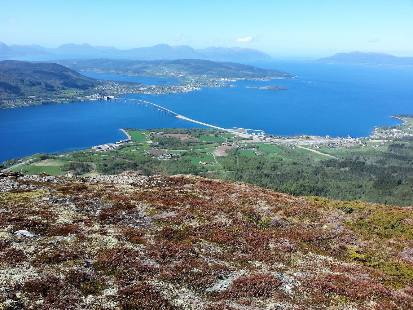 Fantastisk utsikt med 360 grader rundskue. Utsikt til Molde i nord, videre Sekken, Langfjorden og «Raumafjella i aust. Tresfjord, Skorgevik, Vestnes, Tresfjordbrua og Julsundet med øyene i vest.