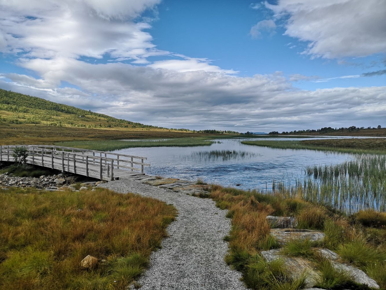 Turen går østover langs bilvegen. Like før enden av bilvegen tar man til venstre på stien som slynger seg slakt nedover og fremover mot vatnet. Etter en lett tur med flotte omgivelser er man fremme ved vatnet. «Teppinga», er utløpet av Herjevatnet. Her er det bygd ny bro over elva. Teppinga ble brukt til å regulere vannstanden i elva i gamle dager. Her kan en nyte utsikten og stillheten fra den flotte gapahuken.