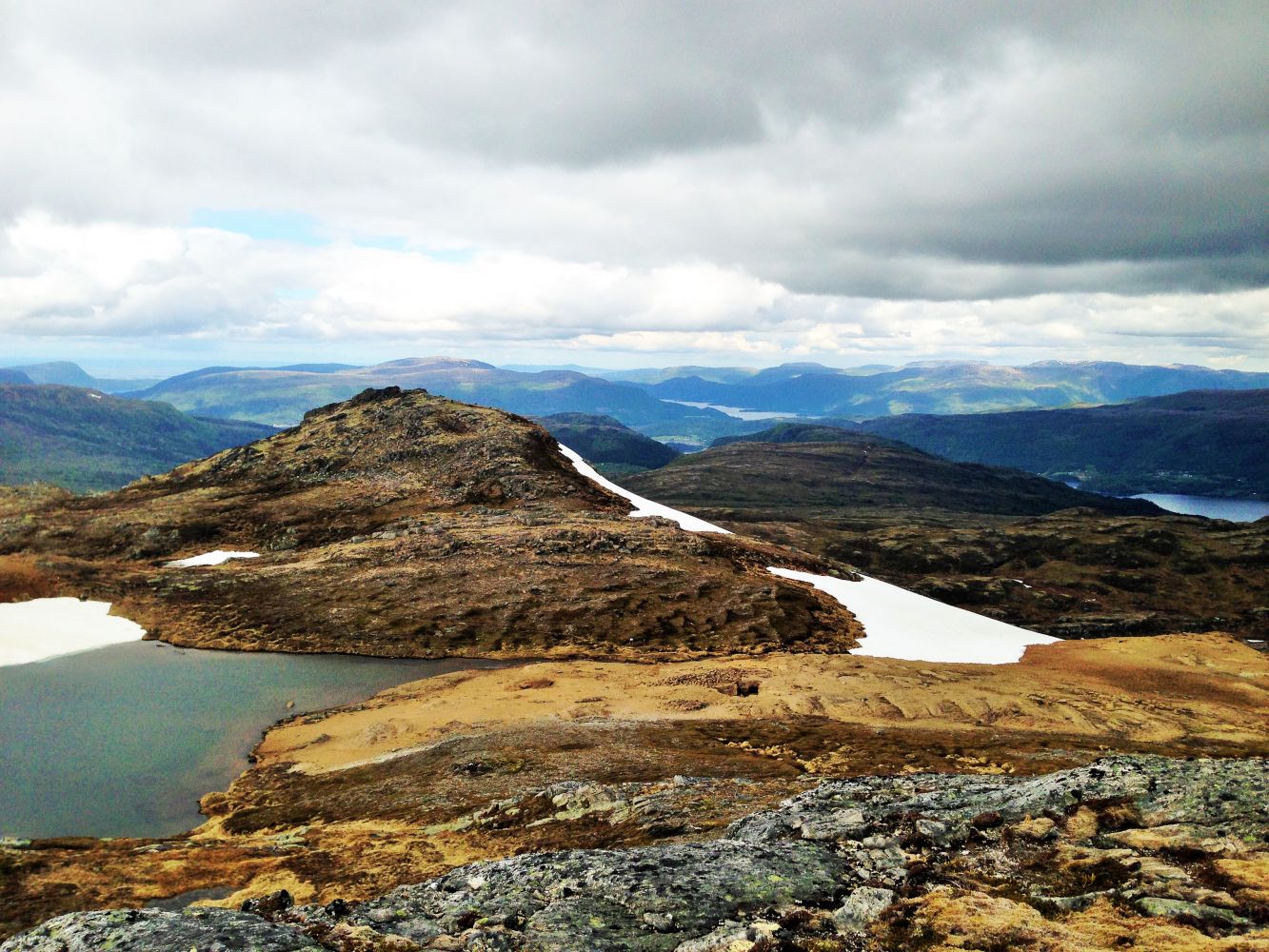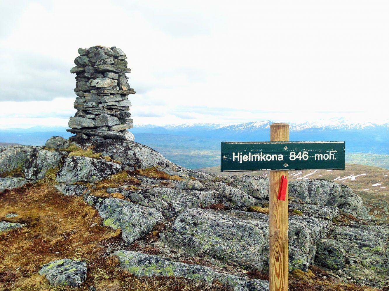 På Hjelmkona er det flott utsikt i alle retninger, særlig om man går helt på toppen 846 m.o.h. Denne turen kan godt kombineres med KNT sitt løypenett til Tverrlihytta, Hjelmen eller Settemsdalen.