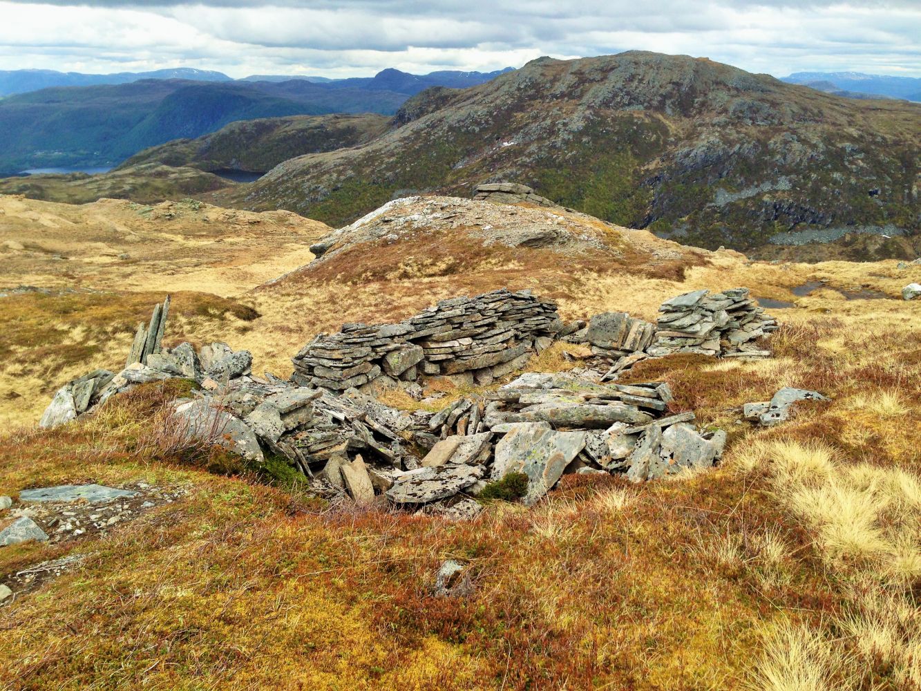Her går du også over en klopp over bekken før du beveger deg inn i området. Husk å trø varsomt (botanisk særpreg)! Turkassa henger på varden på toppen på Hjelmkona.