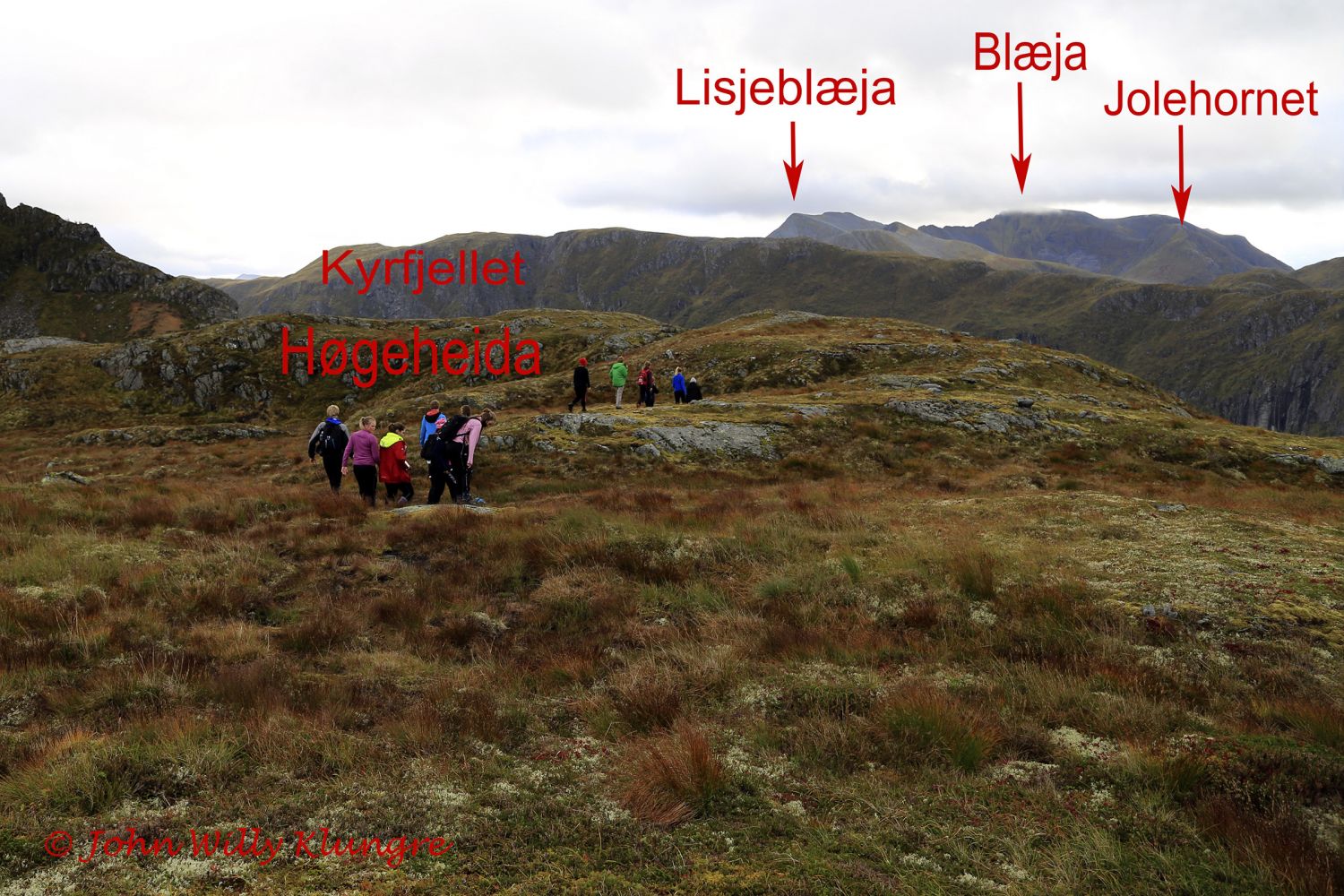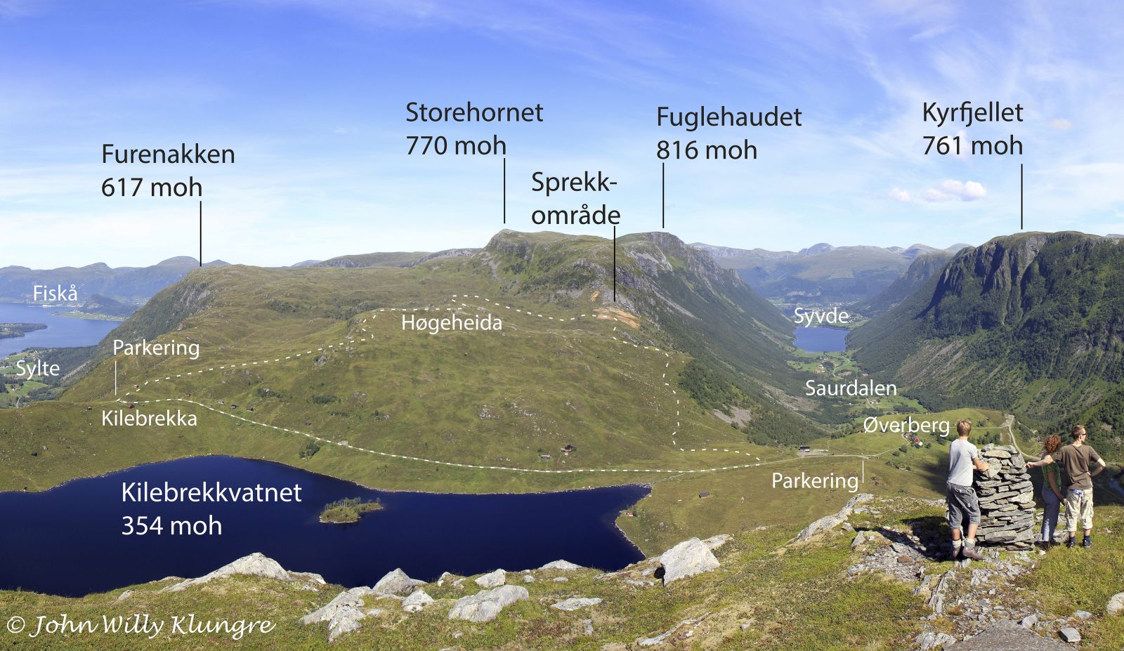 For å få med dei aller yngste kan ein lokke med at ein kan vasse i eit lite tjern, finne sjeldne steinar i eit olivinfelt og sjå på store sprekkar i fjellet i den sørligaste enden av eit sprekkområd på vestsida av Saurdalen. Frå Høgeheida har ein utsikt både mot havet og Stadthalvøya i vest, og mot dei høgste fjella i Vanylven i aust.