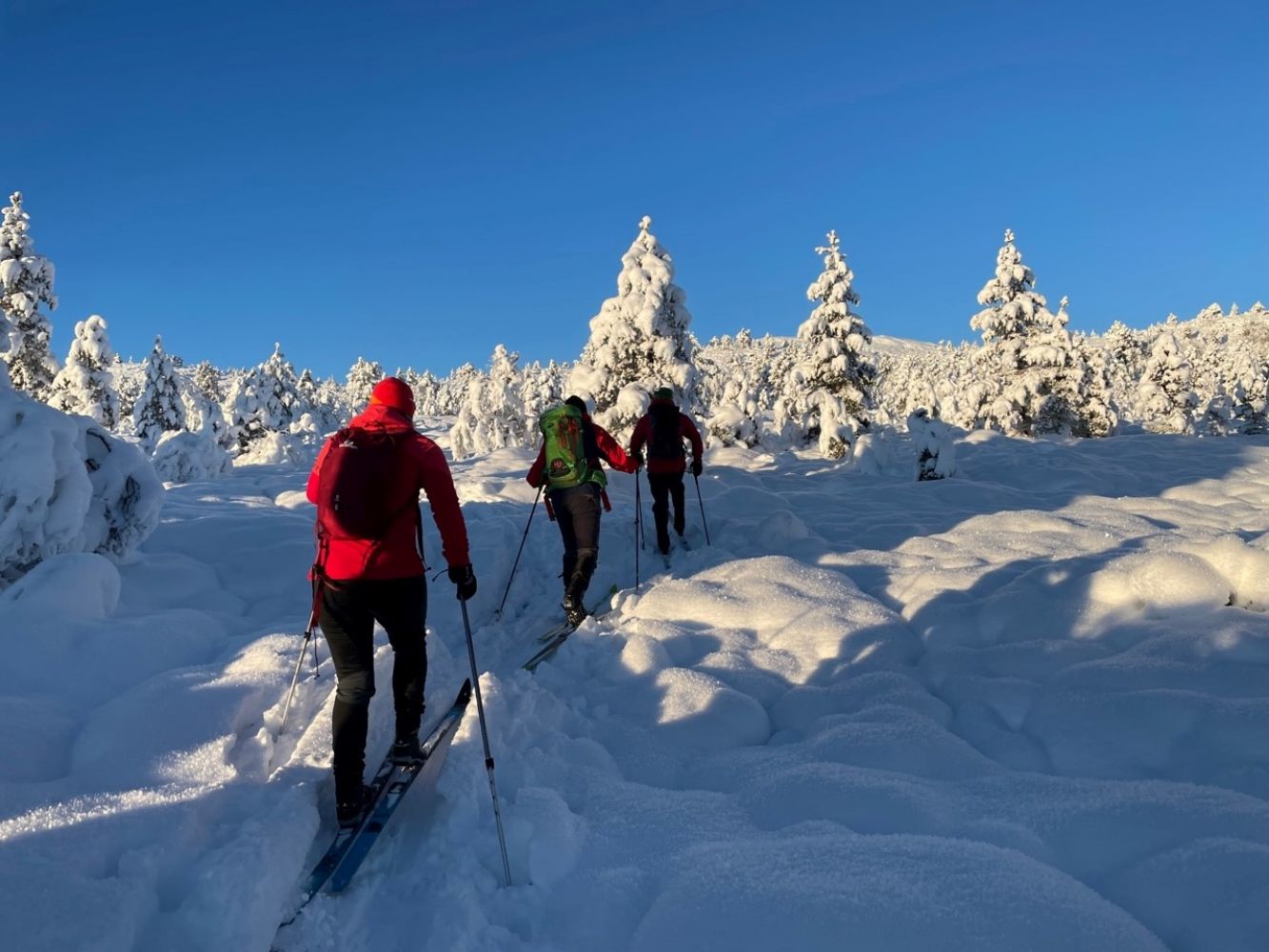 Ganske enkel skitur uten særlige bakker for fjellski (eller rando) til flott utsiktspunkt. Kan også passe for litt erfarne barn.