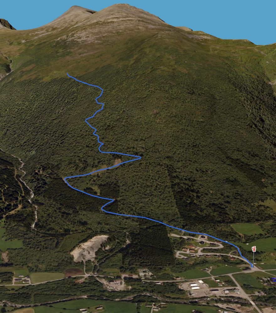 Parker ved ungdomshuset på Raknem. Kryss vegen fra boligfeltet og ta opp traktorvei som starter ca. 50 m fra parkeringen. Følg vegen til endes, og ta så oppover sti som starter med steintrapp. Etter ca. 150 m kommer en inn på den gamle stien til setrene.
