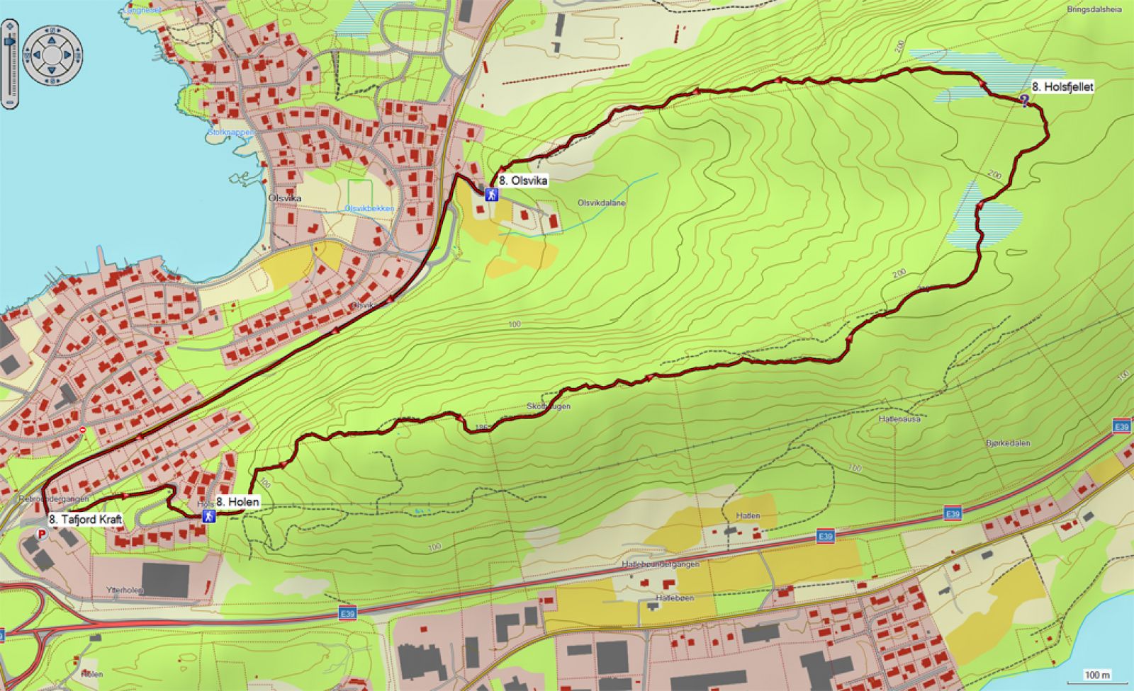 Holsfjellet er lettest å nå fra Holen eller Olsvika. Gå gjerne denne turen som en rundtur som kartet og GPX-filen viser. Fra Holen: Ta av fv. 110 ved Tafjord Kraft. Følg vegen Holstoppen. Stien begynner på toppen ved snuplassen (postkasser) rett under høyspentlinjene. Følg tydelig sti bak siste husrekke. Stien følger høydedraget stort sett hele vegen mot målet, tidvis med flott utsikt. Vil du ha en lengre tur, kan du fortsette på stien som går etter åsryggen østover til Rødlandstua. Fra Olsvika ved Sunnmøre hundeklubb: Ta av fv. 110 der det er skiltet Sunnmøre hundeklubb like før skytebanen. Stien starter ved parkeringsplassen og passerer en liten steingard før den følger en markert rygg med god og tørr sti. Stien stiger jevnt med unntak av et par korte bratte stigninger. Stien følger ryggen helt til den flater ut over noen små berg mot målet. Om du vil legge opp til en rundtur, er det fint mulig ved å følge Østre Olsvikveg og gangvegen mellom Olsvika og Tafjord Kraft.