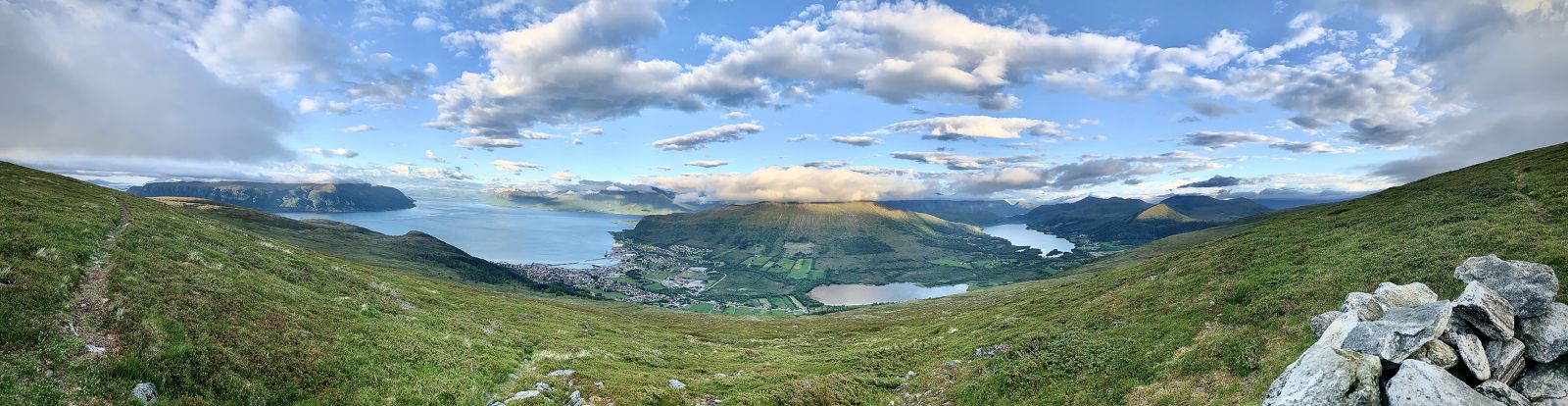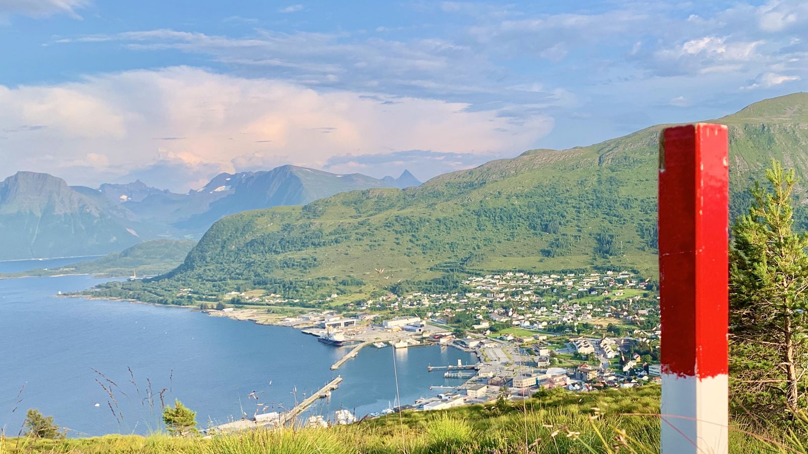 Ein av sentrumstoppane i Hareid. Turen opp til Holstadhornet går på hellelagd sti (Køyrevegen) store delar av vegen. Du har flott utsikt mot mellom anna fire fergstrekningar.