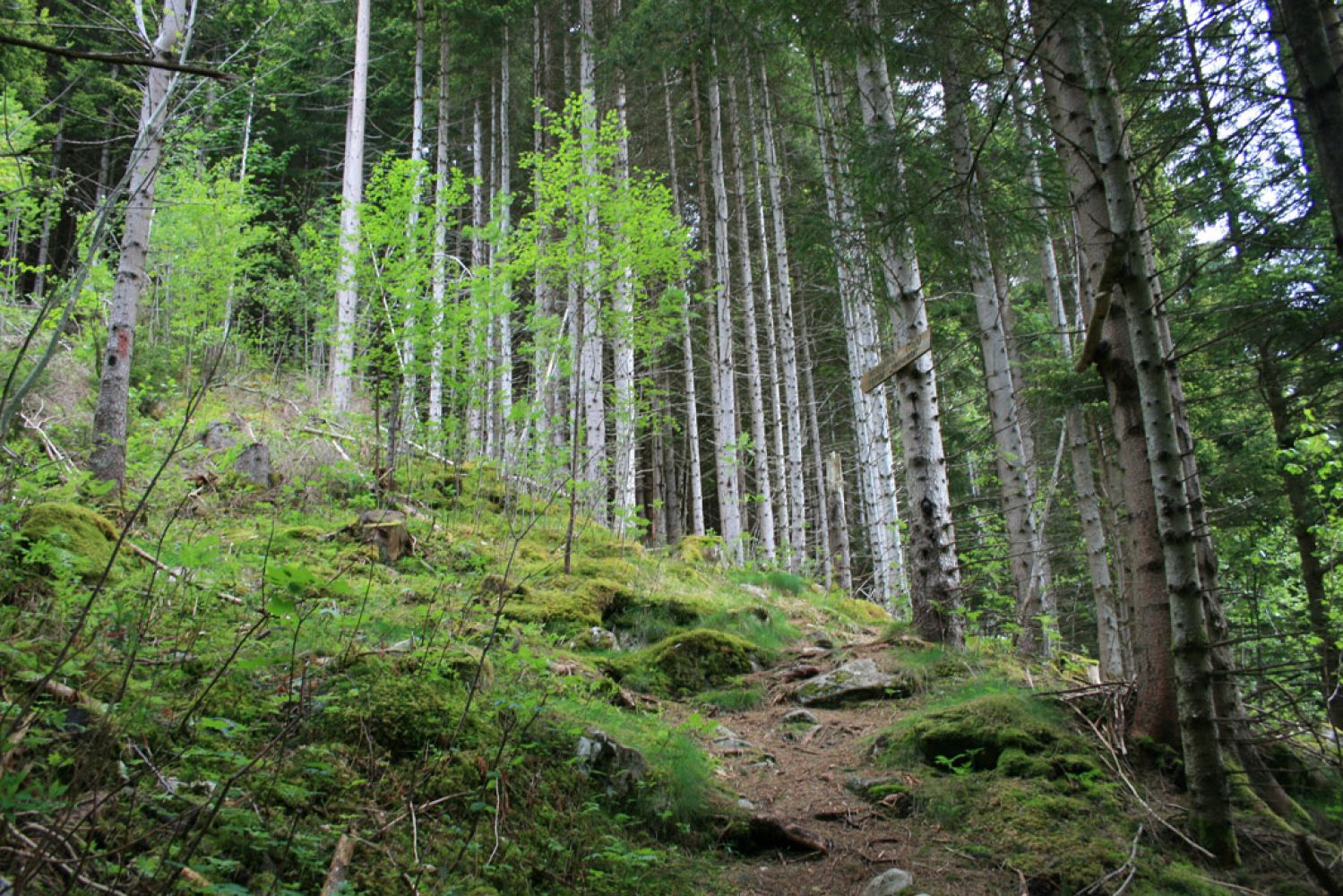 Bratt rås. Går gjennom barskog første delen, men det vert bedre utsikt når ein kjem lenger opp. Mogleg fortsette til Varden, eller gå langs fjellsida til Midtbustsætra.