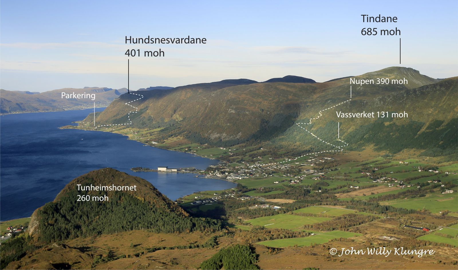 Tur som eignar seg både som trimtur og ein snartur til fjells. Turen går på skogsveg/fjellveg. Det er laga til rasteplassar med sitjeplassar og bord for kvar tredel av turen. Frå dei to vardane som vart sett opp i samband med feste for løypestreng er det utsikt over Vanylvsfjorden og fleire av bygdene langs fjorden.