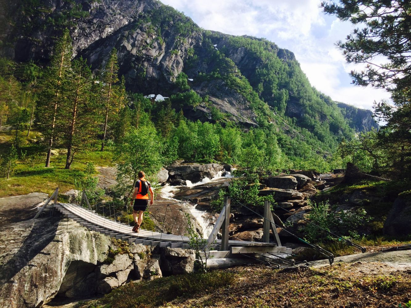 Litt lenger framme kjem vi forbi fleire små vatn, og her kryssar vi elva igjen på ei hengebru. Etter brua går råsa opp ein liten kneik der det kan vere litt luftig ut på kanten - pass på! - elles er det flatt fram mot Illstigvatnet.
