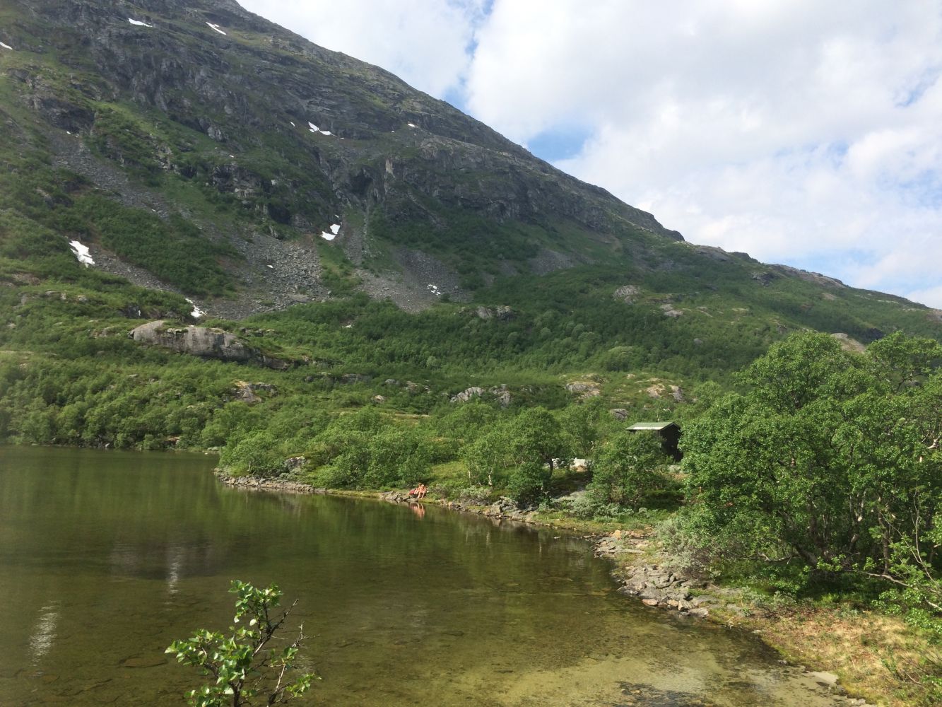 Første stykket går gjennom bjørkeskog langs vatnet, i ei litt ulendt rås/sti (ca 1 km). Dette er ei DNT-rute med T-merka vardar langs råsa (stien). Ved enden av vatnet er det myrlendt og det kan vere noko vått. Det er lagt ut stokkar å gå på langs somme av dei våte partia. Når vi nærmar oss elva vert det meir skjervar og glissen skog. Råsa kryssar elva på ei fin hengebru og held fram oppover dalen på høgre sida av elva. Der er det lett og fint terreng med skjervar, berg, furuskog og lauvskog. Råsa går langs elva, den er fin med små "fossar" med stille kulpar mellom. Det er muleg å bade fleire stadar.