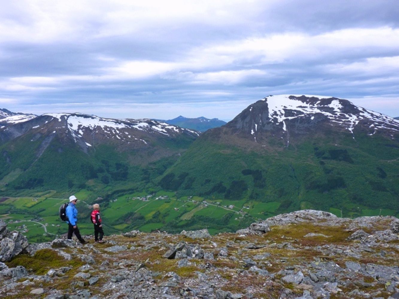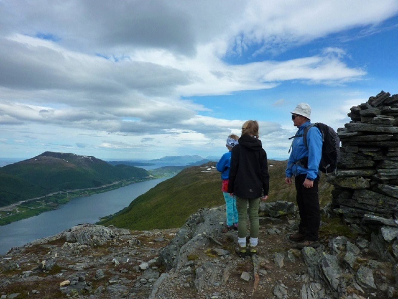 En enkel topptur som går på fin sti og kan godt anbefales som en familietur. god utsikt mot Romsdalsfjella, Nordmøre og storhavet!