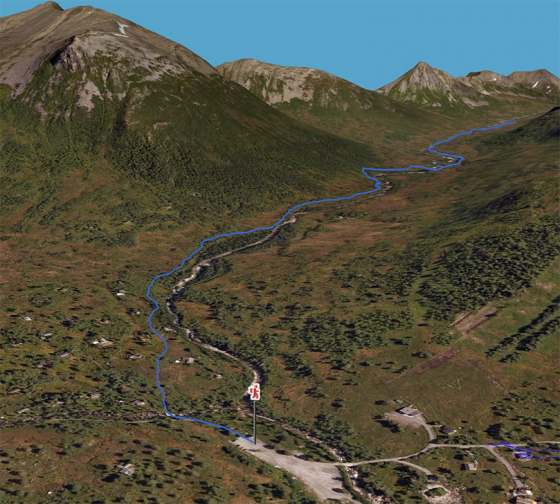 Parker øverst på parkeringsplassen ved Skorgedalen (bomveg). Følg traktorvei til første brua (100 m) og ta over brua på stien inn gjennom hyttefeltet. Følg stien til skilt med Norvikstølen inn til høyre.
