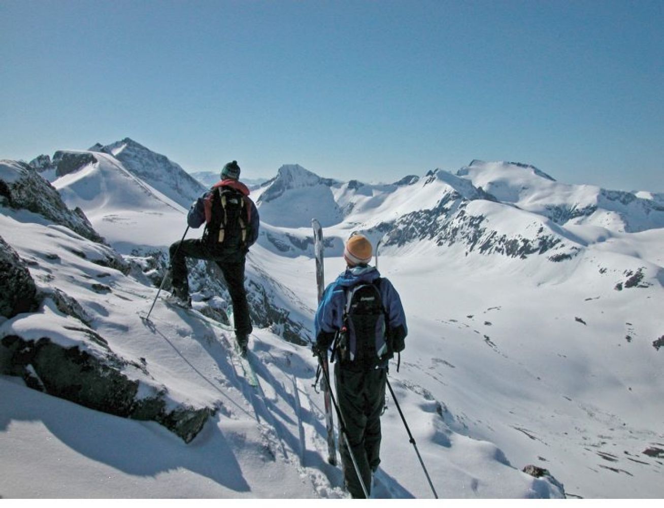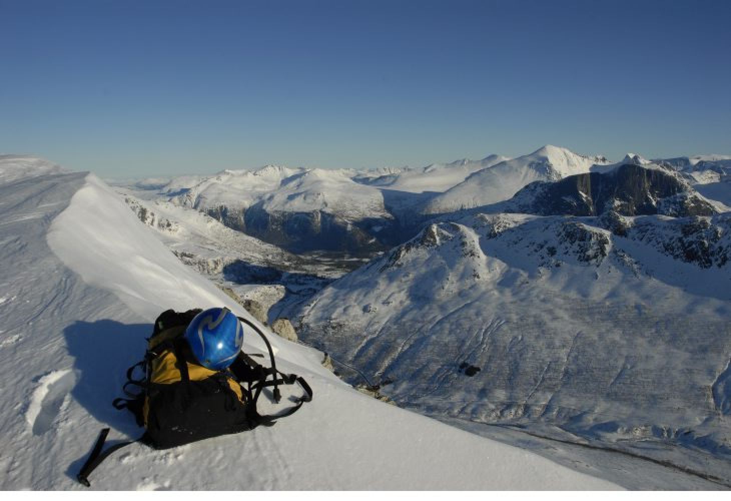 Vistdal/Eresfjord : Fin skitur med jamn stigning meir eller mindre rett til topps, 1279 moh. Panoramautstikt fra toppen som du neppe vil gløyme. Ned igjen kan du nyte pudderføre i om lag 850 meters fall!Siste del i åpen bjørkaskog. Alternativ til å følgje setervegen framover Håndedalen er å krysse elva rett nedom parkeringsplassen. Og ta skogen rett opp derifrå . Det er stort sett berre når elva er frosen eller det er veldig mykje snø, at det er muleg å krysse elva. Frå toppen av Kalvgjeltinden er det heller ikkje langt til Vasstindbu. Ein avstikkar dit er ikkje å forakte !