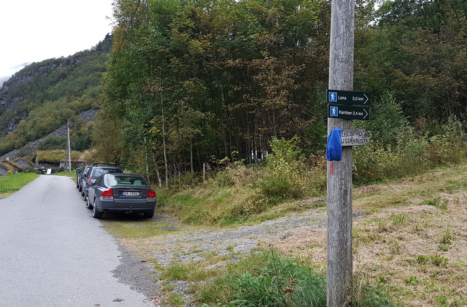 Start ved Bakketunet. Her er det skilta mot Kamben og Leira. Følg skogsvegen knapt 1,5 km. Der skogsvegen sluttar, svingar stien mot venstre. Du kjem til eit stidele der du kan velge å gå til Kamben eller over til Leira. Stien vidare til Kamben er merka. Du kjem om litt opp på myrlendt område. Her kan stien vere litt utydeleg, men sjå deg om etter merking så finn du vegen. På Kamben er det fin utsikt utover fjorden og mot Viddal