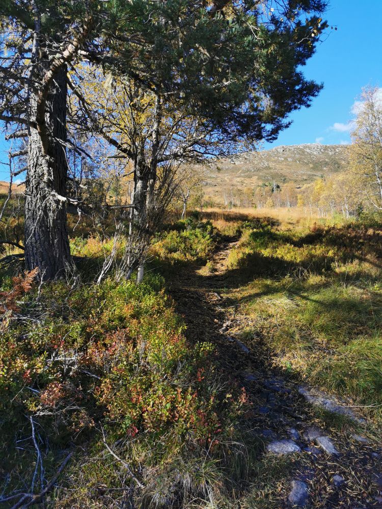 Alternativ trasè: I øverkant av lunningsplassen med grinda startar det ein sti som går meir rett oppover lia. Viss du vel å gå oppover etter denne, kjem du inn på skogsvegen igjen lenger opp. Om våren kan det vera bart langs denne stien medan det enno ligg snø etter vegen.
