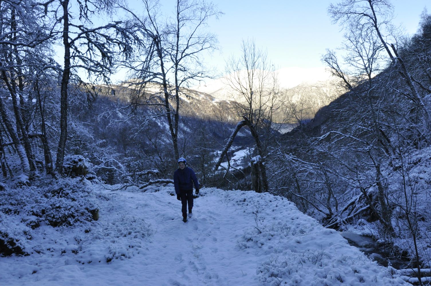 Frå Severinbrauta går du ut grinda mot nord og kan ta snarvegen beint opp langs gjerdet, så kjem du opp på gamlevegen "Kleivane". Vegen går i slynger oppover lia. Siste åra er her rydda godt med skog, så no har du fint utsyn over dalen og dei ulike grendene lågare nede. Etter kvart som du kjem høgare opp, får du òg sett meir av grendene Rønneberg og Kilsti i lisida tvers over dalen.
