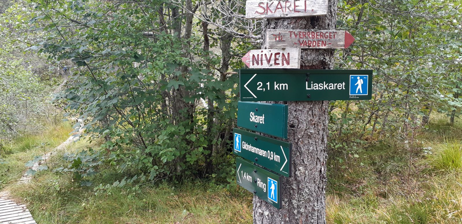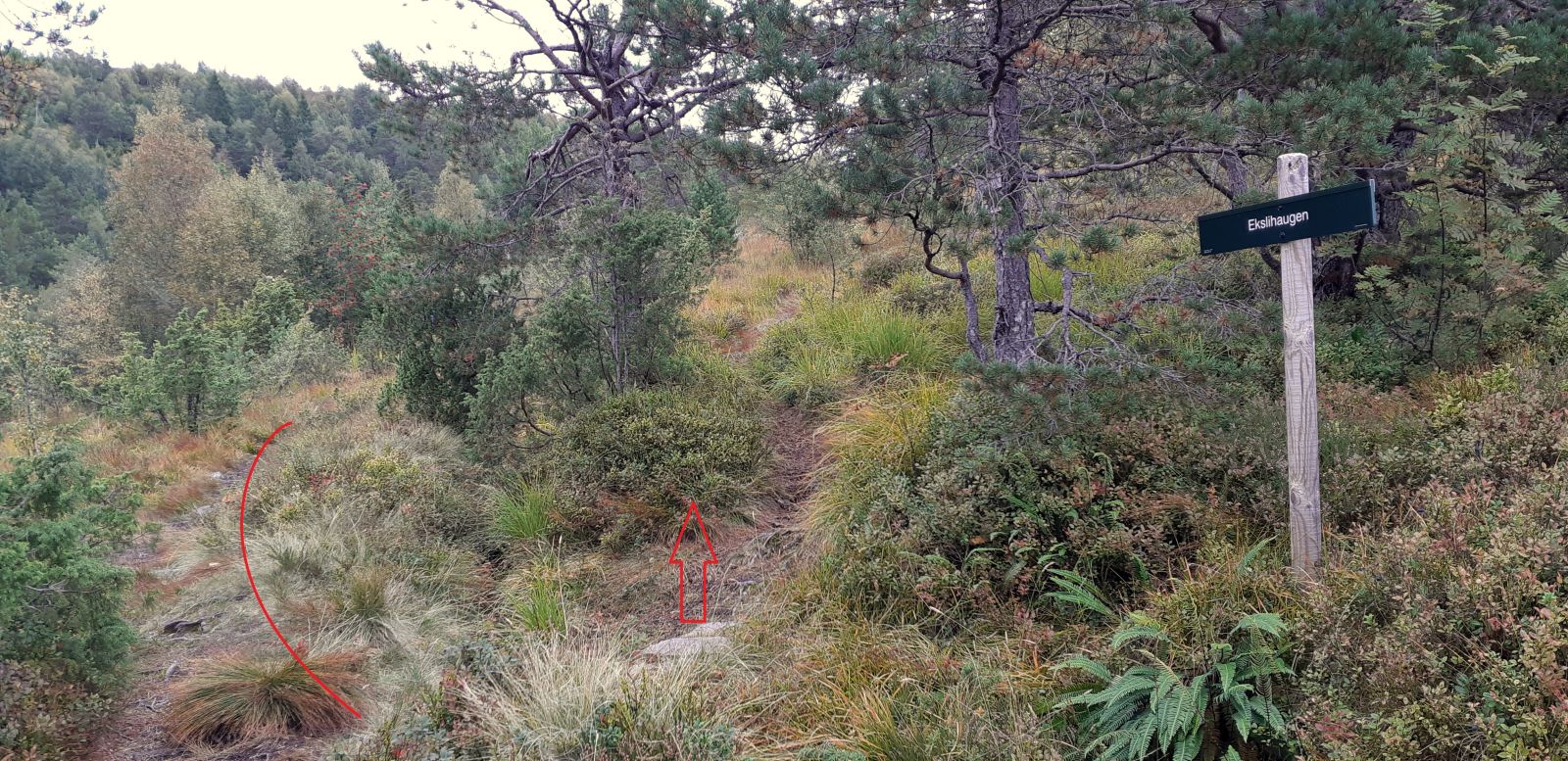 Ta av frå Kleppevegen opp Kleppetunvegen. Følg denne i knapt 50 m og ta sti opp til høgre. Følg skilt til Ring. Når du kjem til ei elv, etter ca 400 m, følger du skilting til Ring via Skaret. Du følger tydeleg sti heilt til du møter den andre stien ved Ekslihaugen. Du kan velge om du følger stien langs elva, eller om du kryssar elva og følger stien der. I lengde er det hipp som happ kva du velger. I denne turomtalen har vi tatt stien der du kryssar elva.