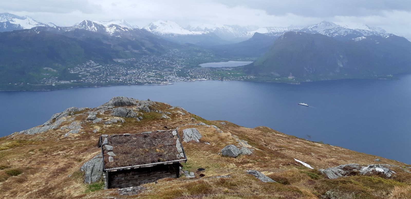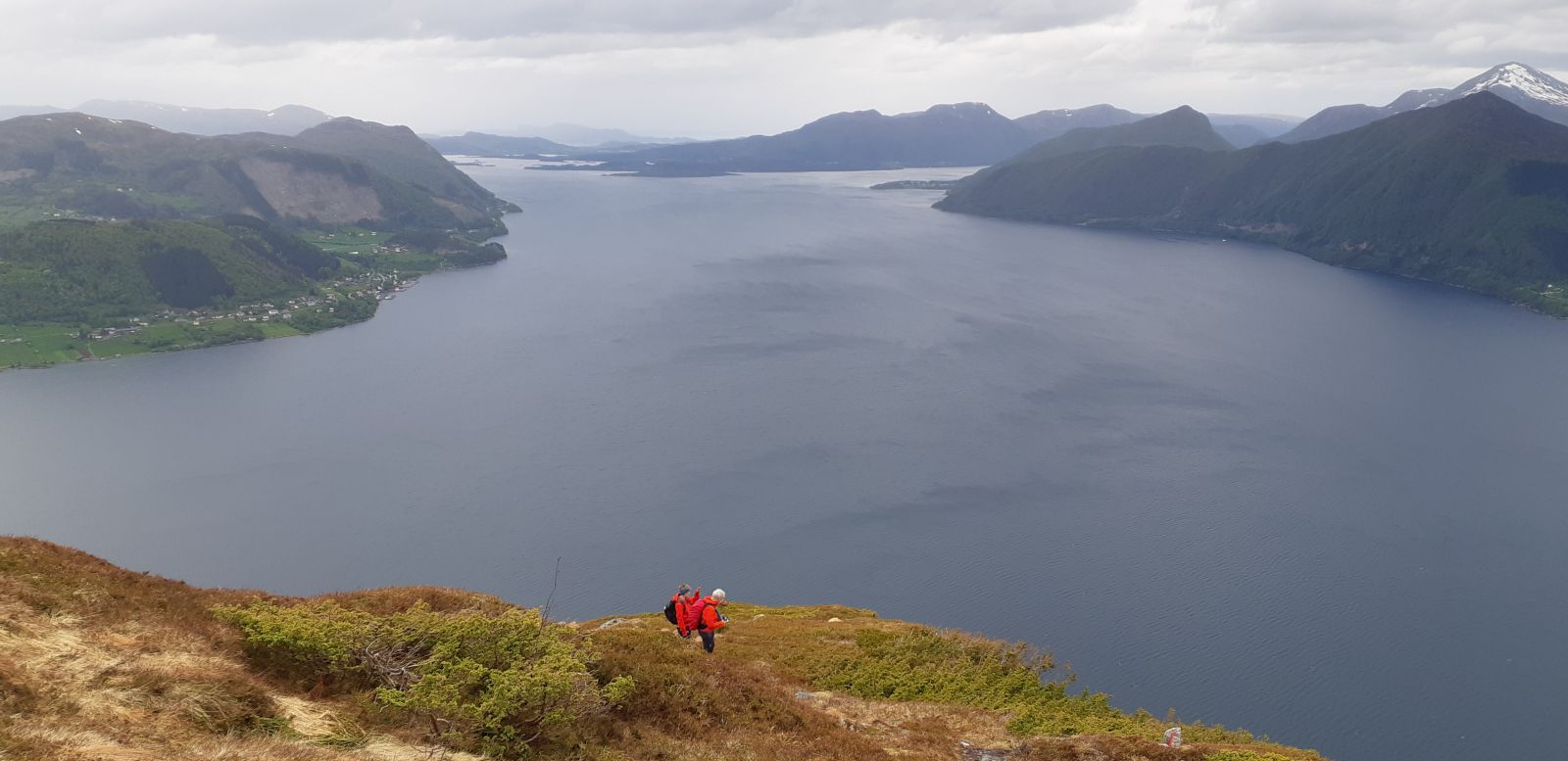 Følg skogsvegen opp til setra Gamlegjerdet, ca 1,5 km. Her er det eit par hytter og ei til på gang. Stopp litt her og få med deg den flotte utsikta inn Dalsfjorden. Frå Gamlegjerdet er det sti vidare til topps. Den er litt svak, men er likevel grei å finne. Du kan sjå nokre merke som heng i trea og malte flekkar på steinar. På toppen er det flott utsikt! Treng du ly, kan du gå inn i hytta like nedanfor toppen. Hugså late att vindu og dører etter deg. Same rute ned att.