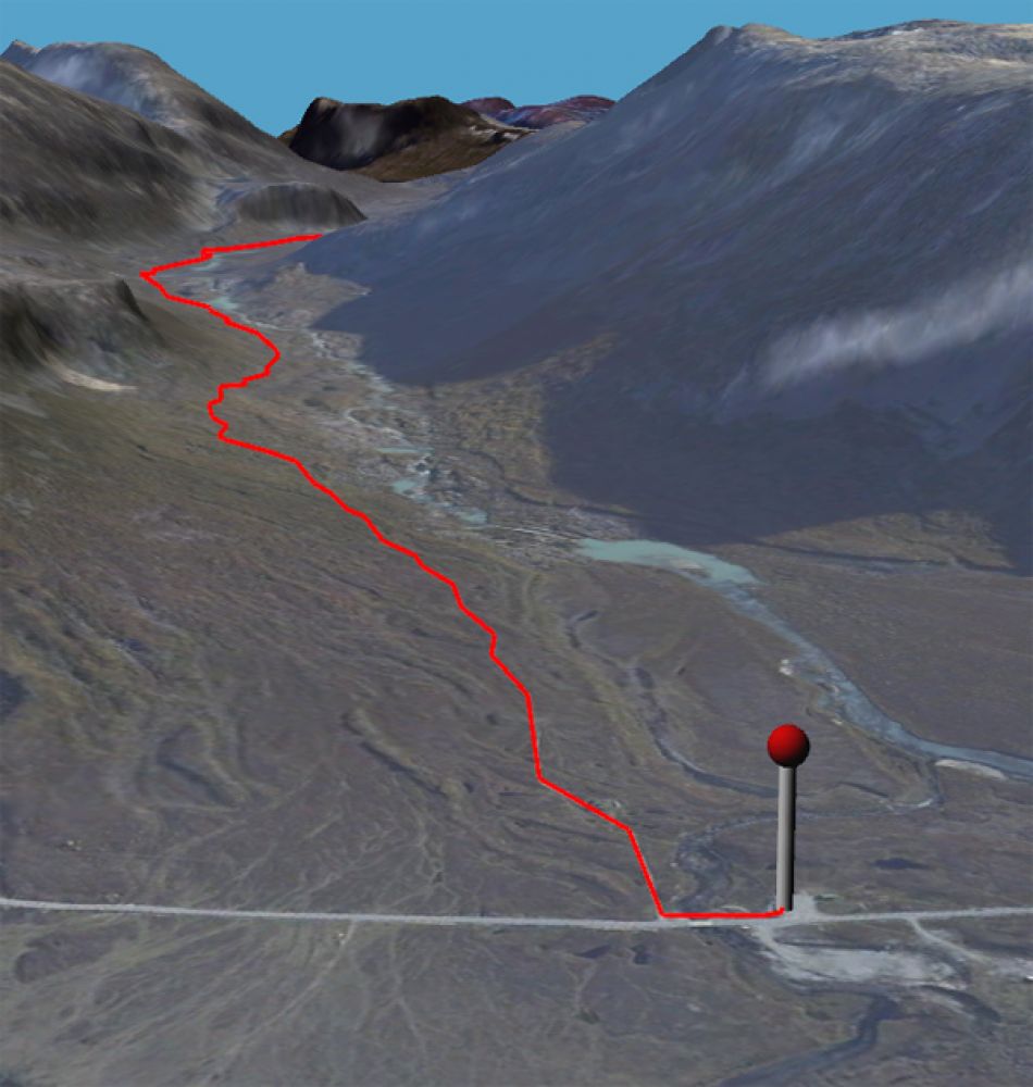 Stien slynger seg i veldig slakt terreng innover dalen til venstre for elva, og etter ei lita stigning etter ca. 1 time åpner den seg enda mer opp det siste stykket inn til Kulehytta.