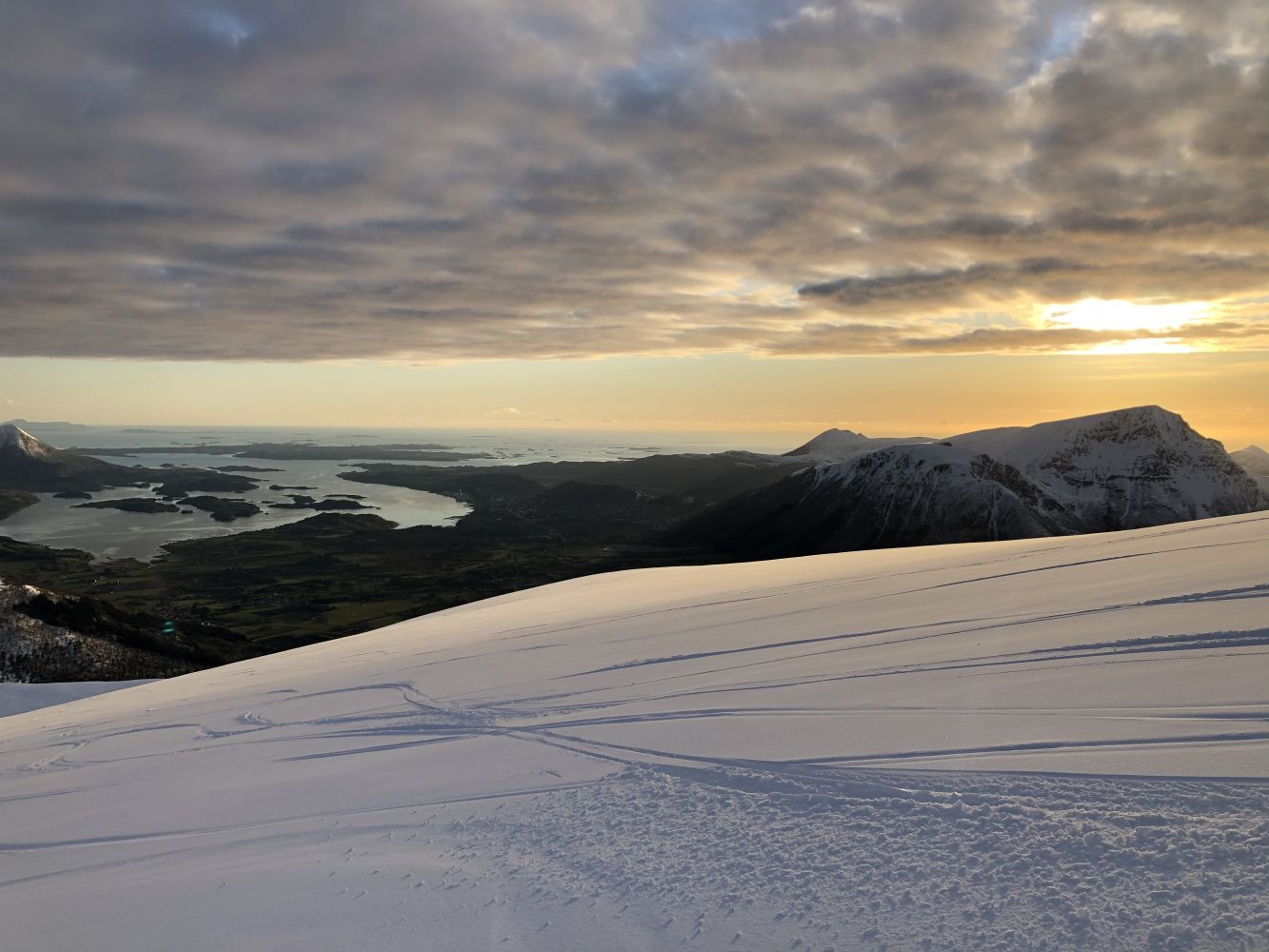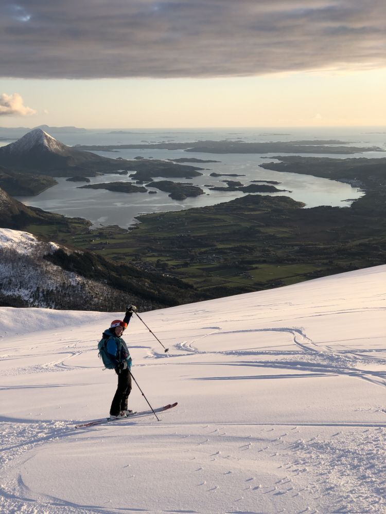 Flott topptur på ski med utsikt til både havet og Romsdalsfjella.
