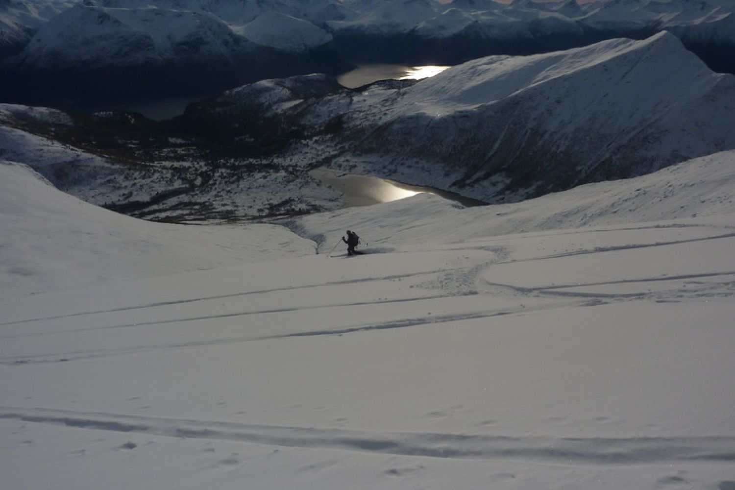 Fra Kvasstinden er det flere flotte nedkjøringer. Sydflanken er mest avhengig av gode snøforhold.