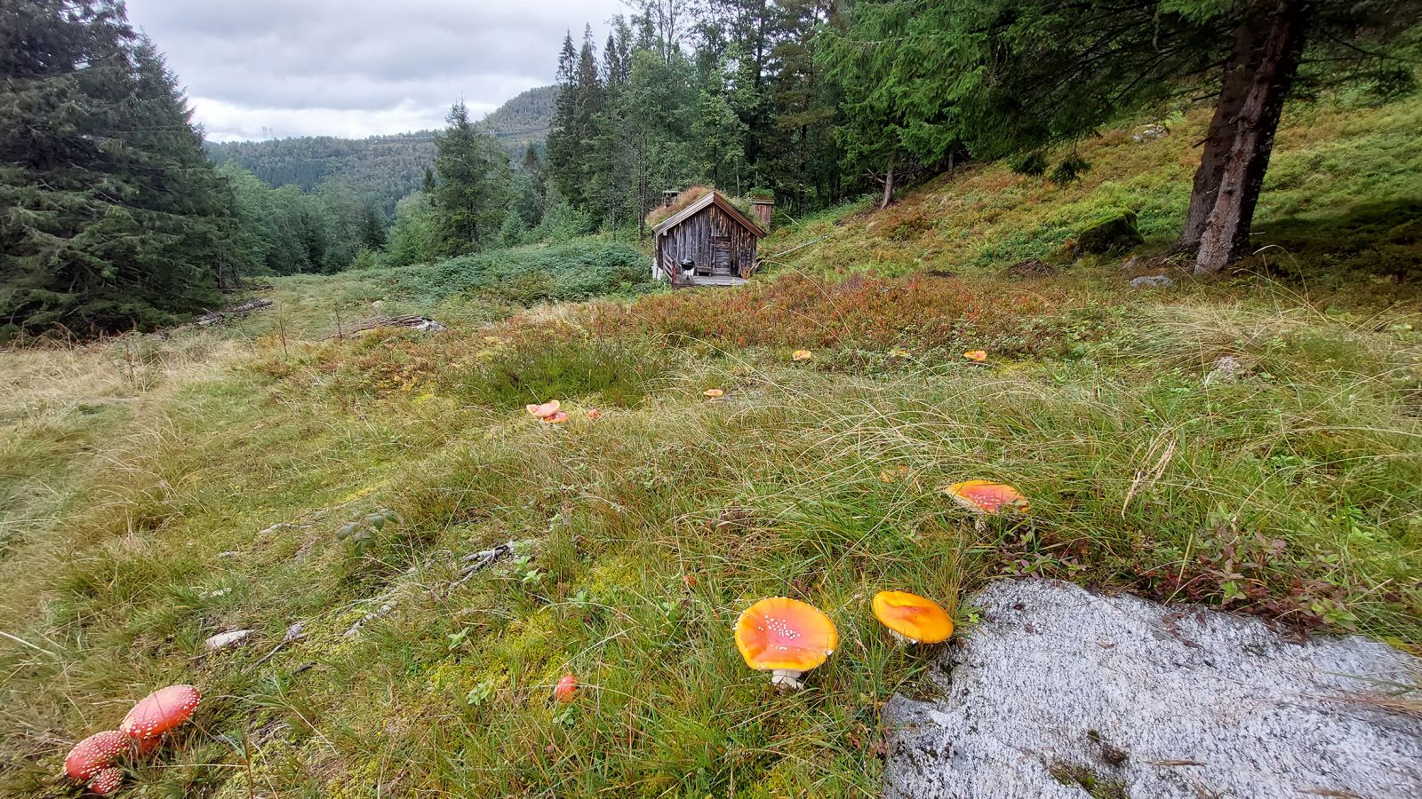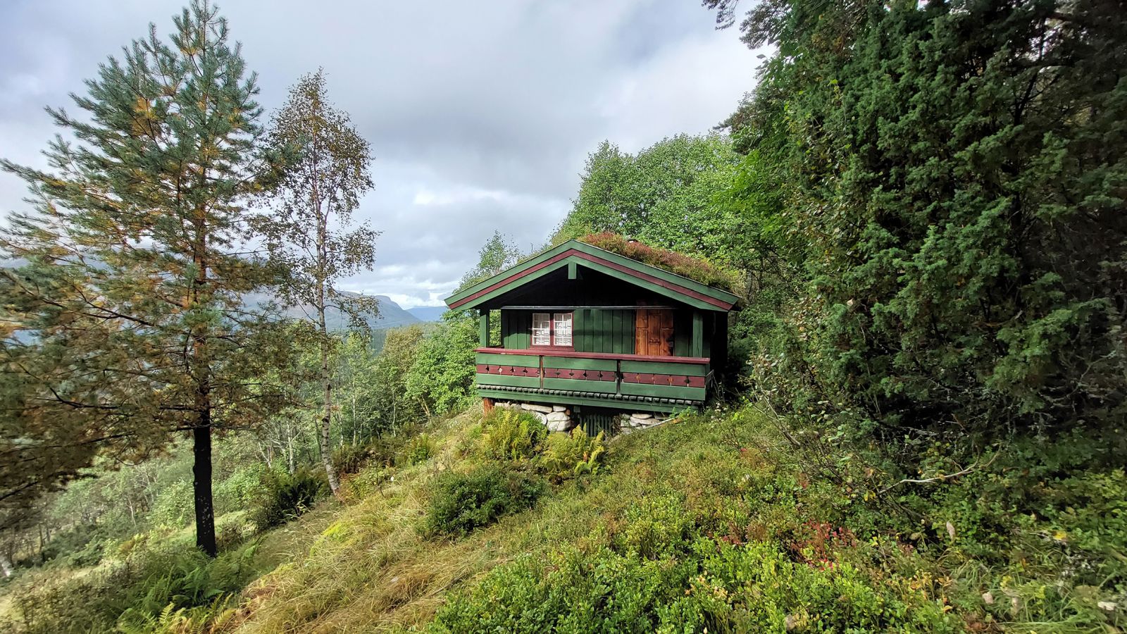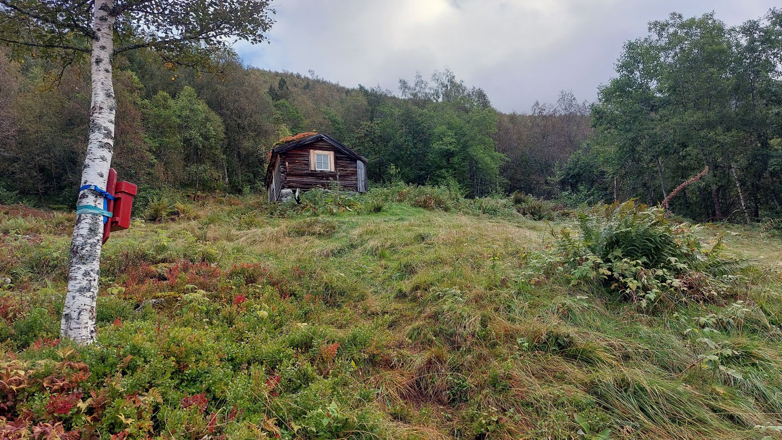 Fin og enkel tur langs traktorveg opp til ein gamal seterstøl i Kvidalen, den trange dalen mellom Skjorta og Goksøyra. På veg opp høyrer du bruset frå Kvidalselva og ser rett opp mot toppen av Skjorta.