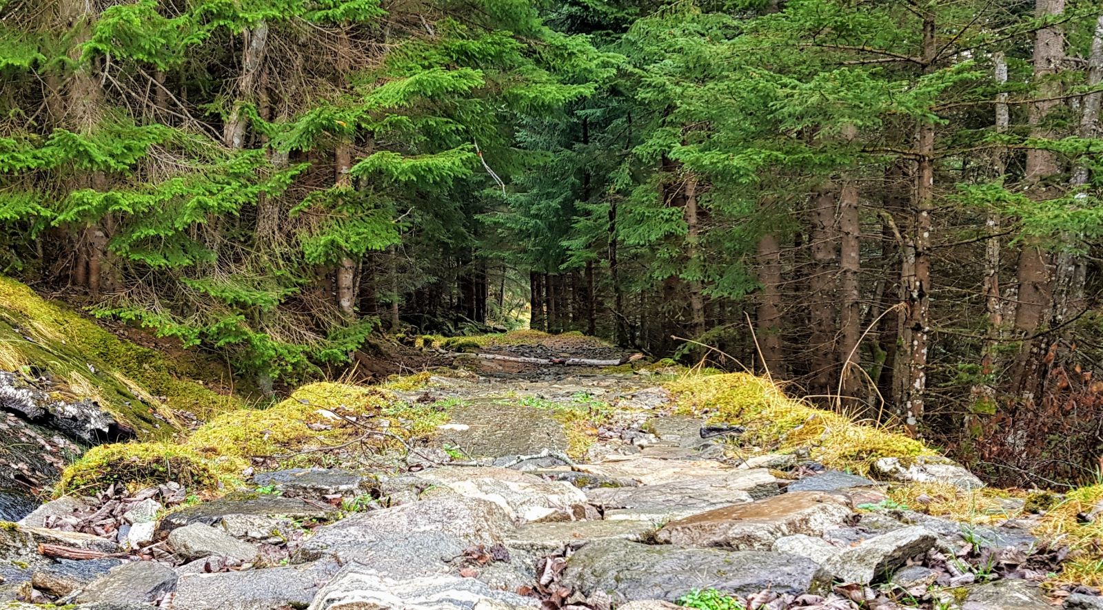Turen startar ved å gå gjennom ei grind like ved vegen til barnehage/grendahus. Turen føl deretter ein gamal, graskledd kjerreveg. Her er ingen vanskelege parti, men det er noko stigning. Underlaget er noko ujamt, så dersom ein er ustø til beins, kan eit par stavar vere til hjelp. Det er også fullt mogleg å sykle både opp og ned denne vegen, men ta omsyn til turgåarar og beitande dyr. I vinterhalvåret blir ikkje vegen brøytt, men det er sjeldan særlege mengder med snø nede i bygda, og det går fint an å trakke seg ei rås. Elles fint med bruk av truger. Fin utsikt til bygda det meste av vegen. Turmålet, Kvilet, ligg inne mellom nokre store graner, om lag 0,9km frå start, ved eitt par heller som er lagt ned som kvilebenk. Retur same veg, eller du kan velje å gå lengre.Viss du vil kome høgare til fjells, kan du følgje den gamle fjellvegen heilt til garden Hatlestadgjerdet (Gjerda), og her kan du kome inn att på den asfalterte nye fjellvegen. Der kan ein følgje bilvegen ned til bygda att. Eventuelt kan ein krysse vegen og halde fram på den gamle sætrevegen heilt opp til Rellingsætra, 600m.o.h. Retur same veg, eller retur vestover via flatare grusveg til parkeringsplass ved Hatlestad.
