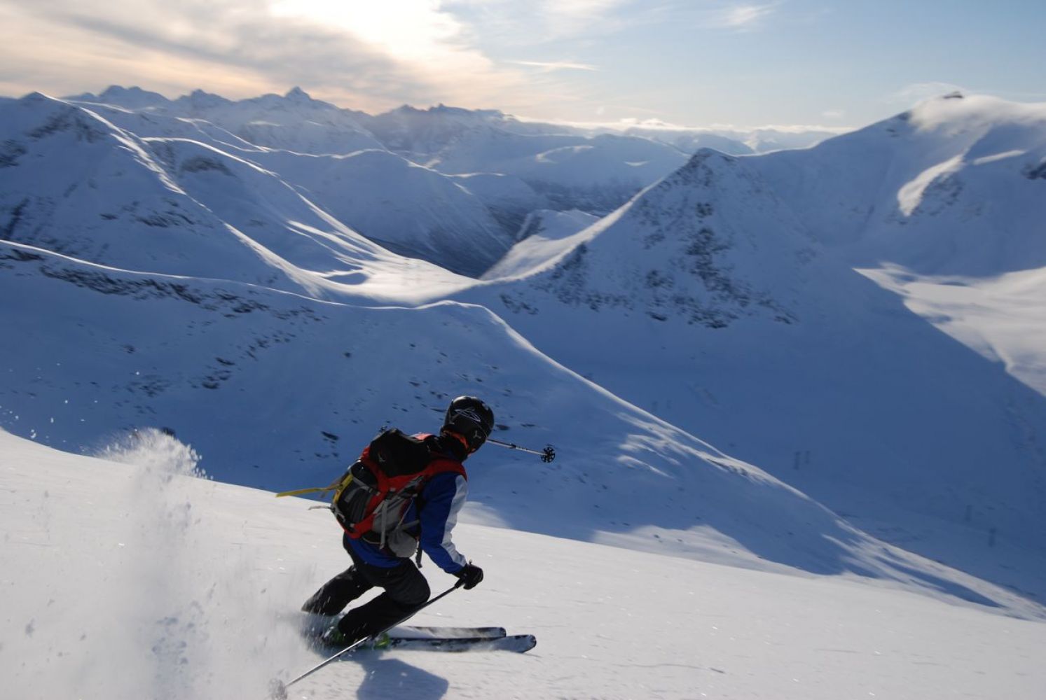 En fantastisk tur der du går mye på rygg med Eresfjord og Eikesdalsvannet på den ene siden, og utsikt mot kjente Romsdalsfjell på den andre. Utsikten og inntrykkene opp mot toppen er av områdets beste. Nedkjøringen rett ned og vestover fra toppen har ofte god snø. Følg veien ut Horndalen til parkeringsplass UTM32N 6946963.0N 450298.0E