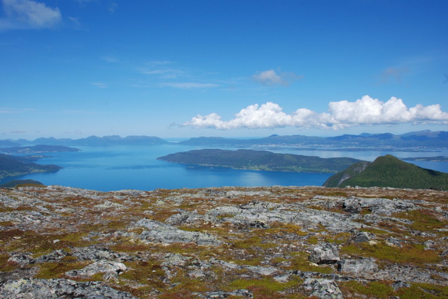 Veldig flott tur fra Vollstølen og opp til toppen av Kvitfjellet (Oksen) som byr på fantastisk utsikt over havet og fjella