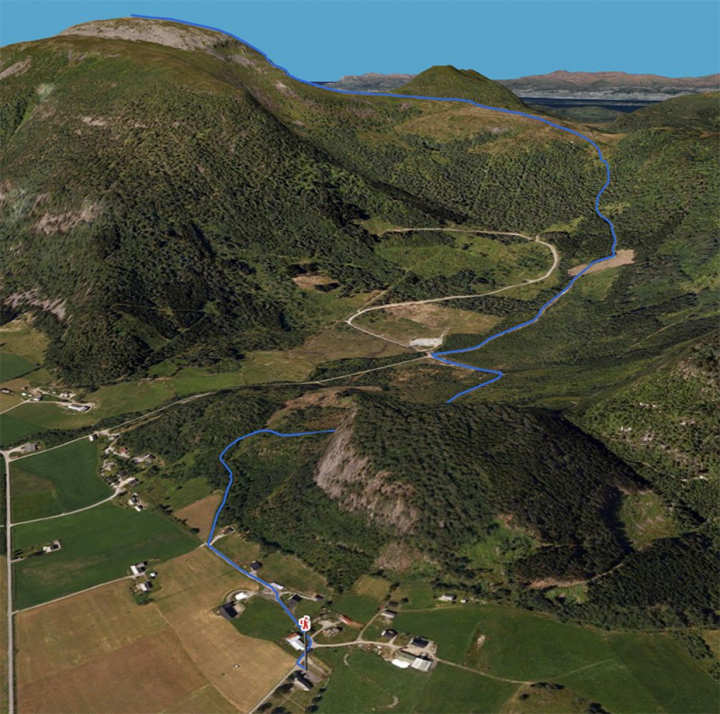 Følg skilting langs grusvei opp bakken. Ved veiskille fortsett rett frem på traktorveg som går langt opp i lia. I enden av traktorvei følg sti videre opp i Sletteskaret og som etterhvert dreier vestover videre mot Heian.