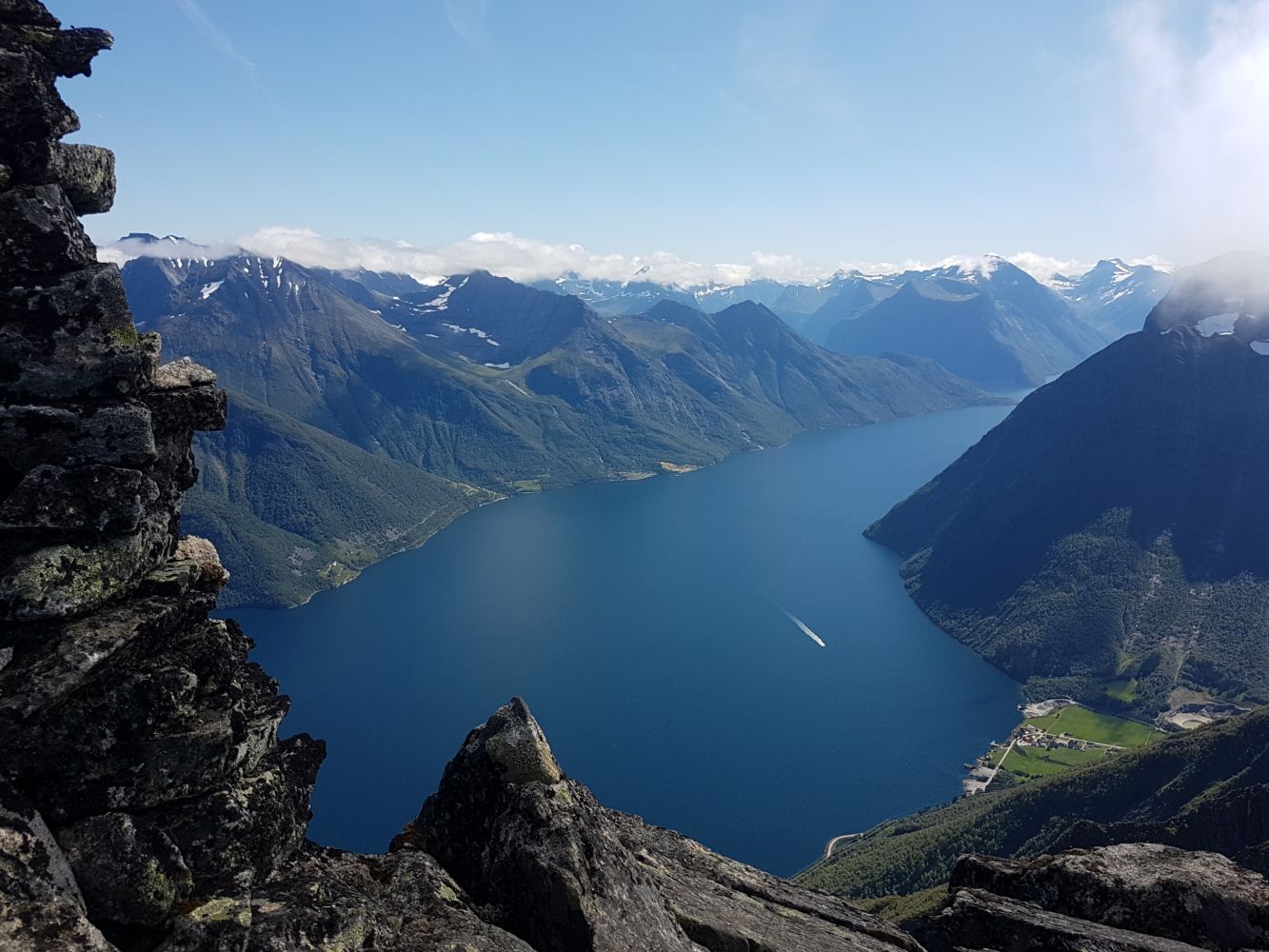Når du når toppen, får du ei fantastisk utsikt! Gi deg tid til å nyte den før du startar på returen