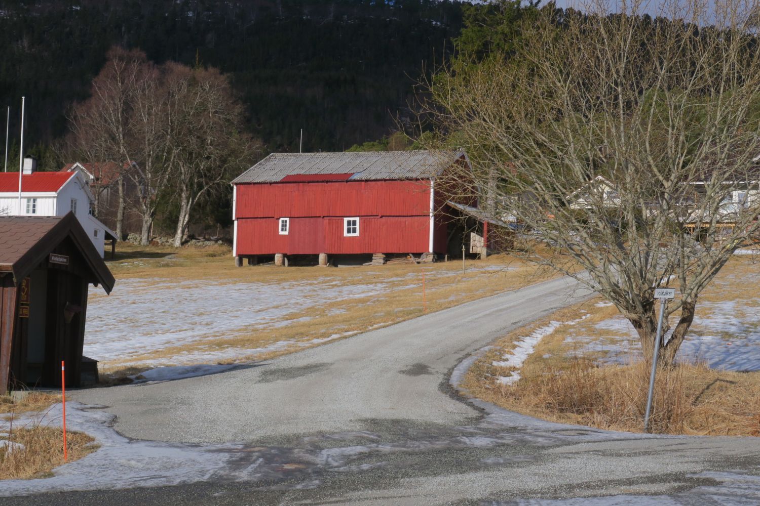 Turen går fra Flatset (tidligere møbelfabrikken) på Frei, krysset Rastarkalvvegen og Flatsetbakken. Du krysser veien Flatsetbakken og går deretter inn i veien Vollabakken. På starten av denne private veien sees ei fin brun "postbu". Vollabakken er privat og det skal ikke kjøres eller parkeres langs denne veien. Etter 100 meter passer du på å holde til venstre oppover bakken - Seterhaugen og Freikollen sees langt der fremme. Veien går etterhvert inn i skogen på fin bred skogsvei. Følg skogsveien til du møter en like bred skogsvei som går til venstre. Følg denne til du ser en sti som går slakt oppover til høyre. Stien går inn i en magisk trollskog i slakk oppoverbakke. Du møter en stidele og hold til høyre. Følg stien til du kommer opp der skogen åpner seg. Bred skogsvei møter deg og du følger den til du ser Larsbua på høyre side.