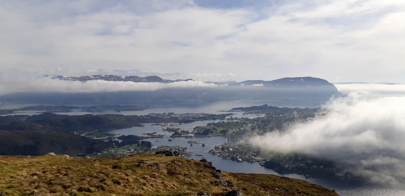 Leinehornet er høgste fjellet på Leinøya. Her har du god utsikt mot dei andre øyane i Herøy og mot Ulsteinvik og fjella på Hareidlandet. Denne ruta følger ryggen frå Volsundfjellet, som gir deg flott utsikt heile vegen til topps.
