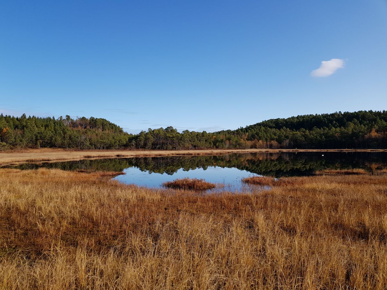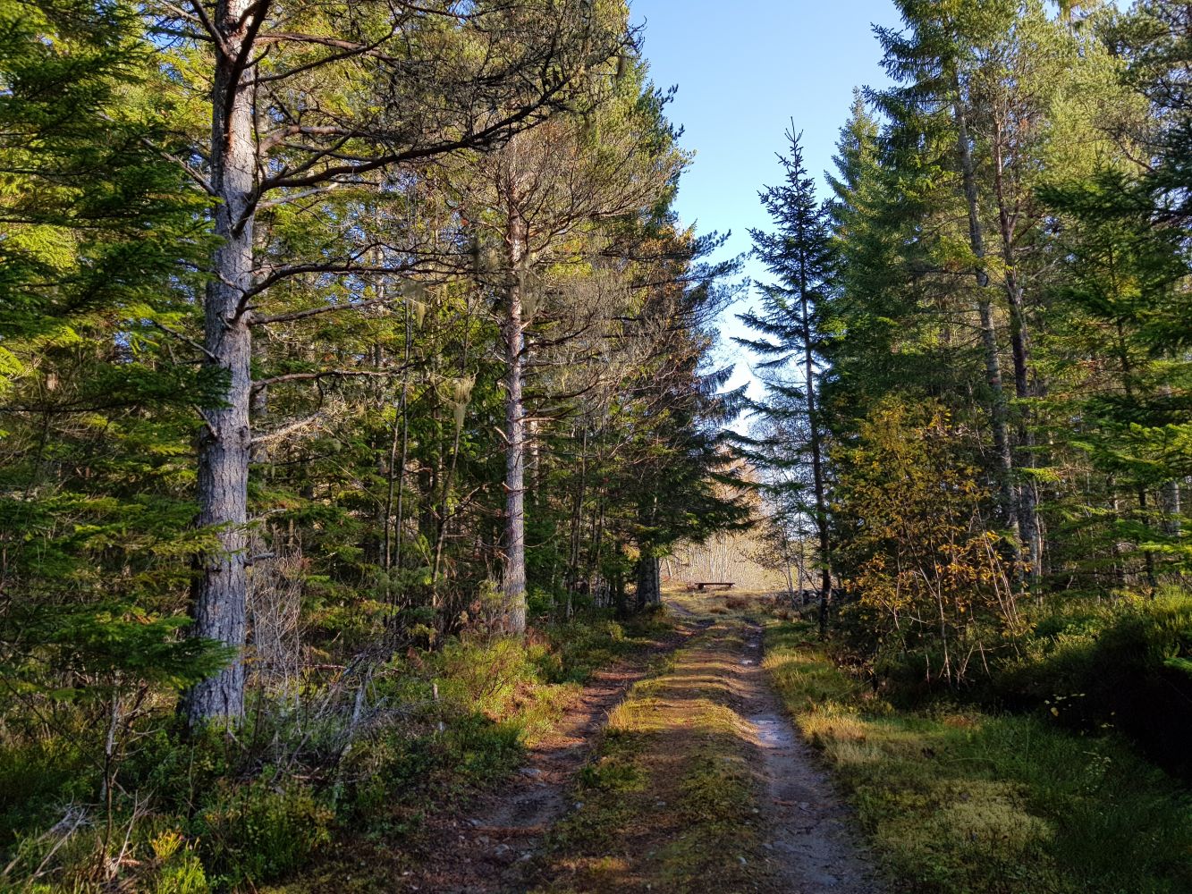 Parkering ved badeplassen i Leirvågen. Skogsveg som går gjennom flott furuskog og forbi skogstjern. Vatnet Lauva er eit idyllisk mål for turen.