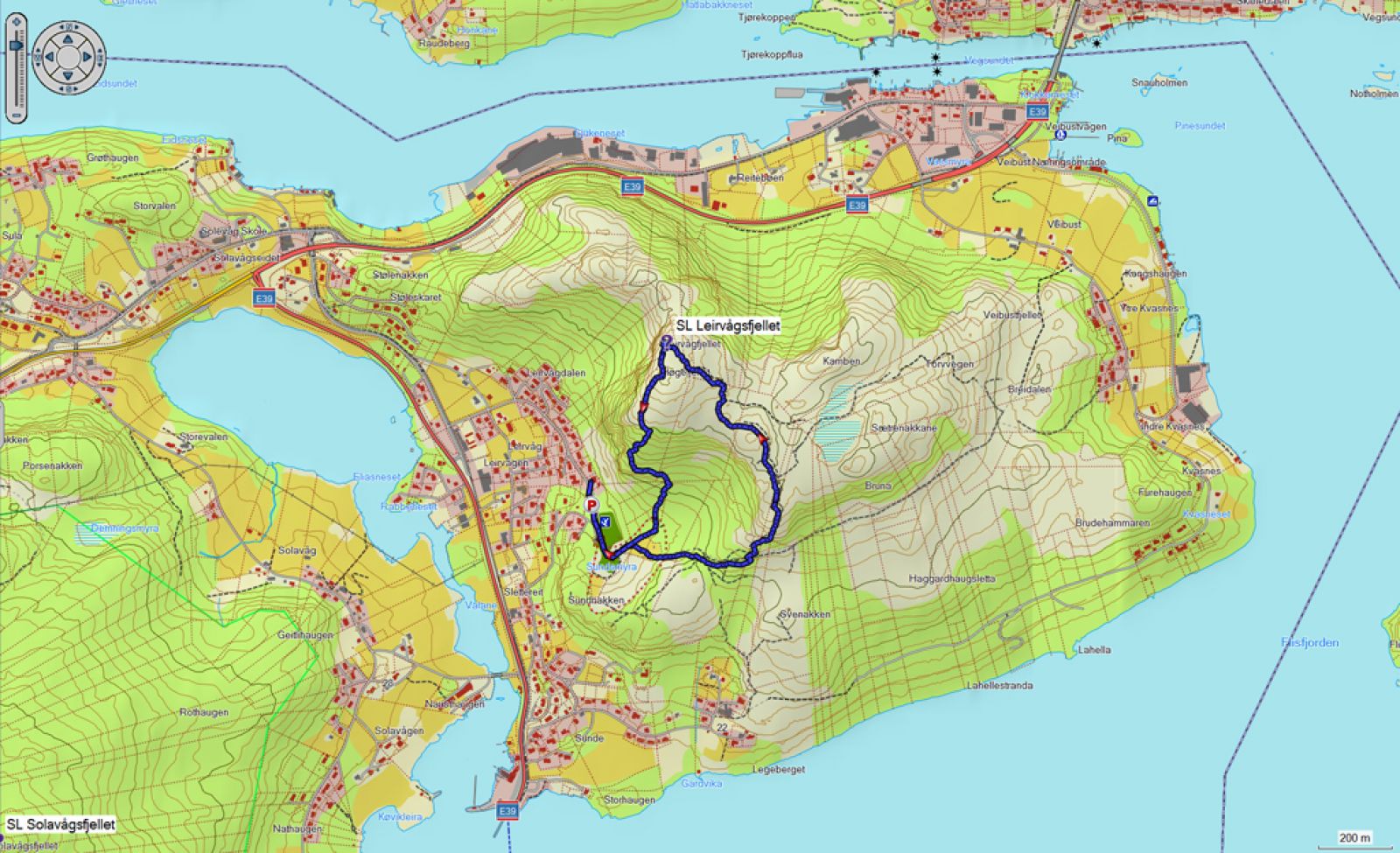 Start frå parkeringsplassen ved idrettsplassen på Sundsmyra og vidare på sti opp til toppen av Leirvågfjellet. Ein kan gå turen som ein rundtur eller velge same veg opp og ned om ein ønsker det. Turen går i fint terreng, på tydeleg sti og alle stikryss er merka. Steinbruer og klopper dekker våte parti.