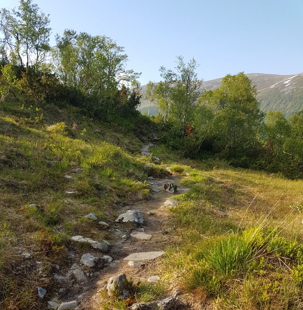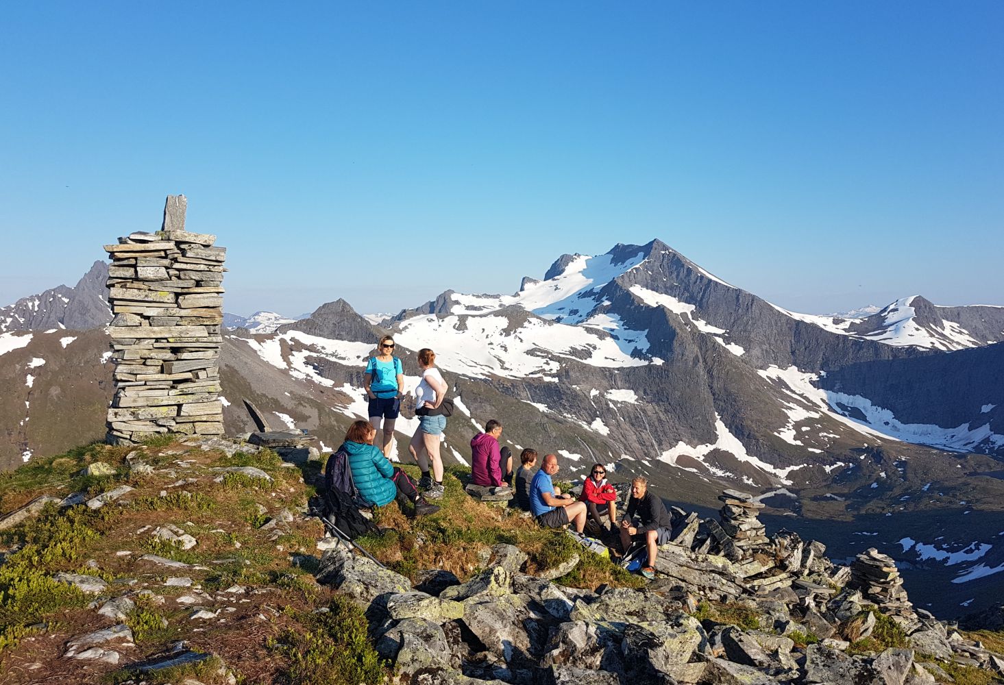 Variert og fin tur på god sti. På toppen er det super utsikt: mellom anna til Molladalstindar, baksida av Saudehornet, ytste del av Dalsfjorden, Rovdefjorden og utover Breisundet.