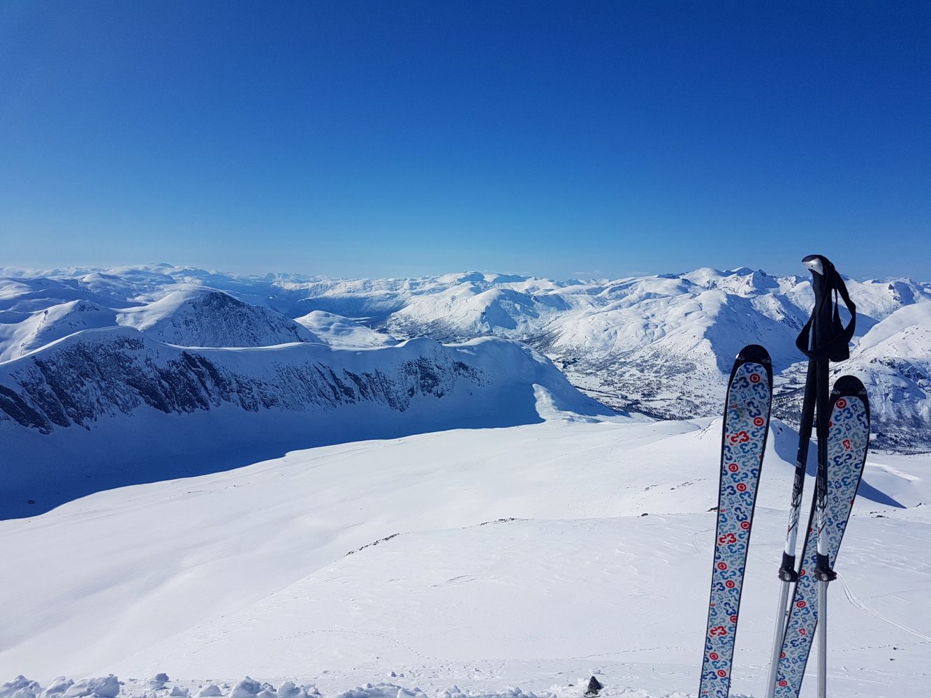 Ein skredsikker og flott tur som du kan gå både med randonee-/telemarkutstyr og med fjellski. På toppen er det fantastisk utsikt med kvite toppar overalt!